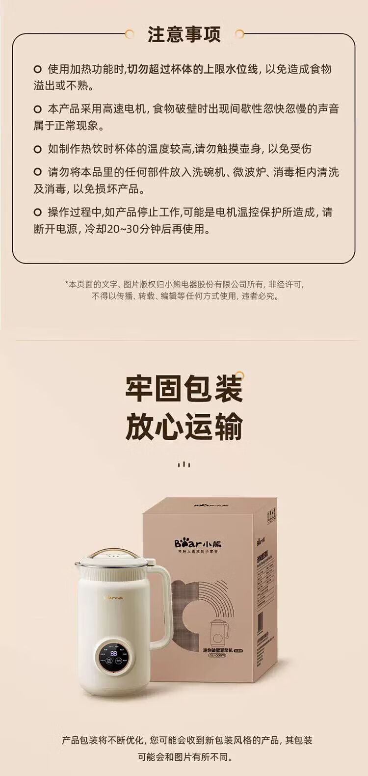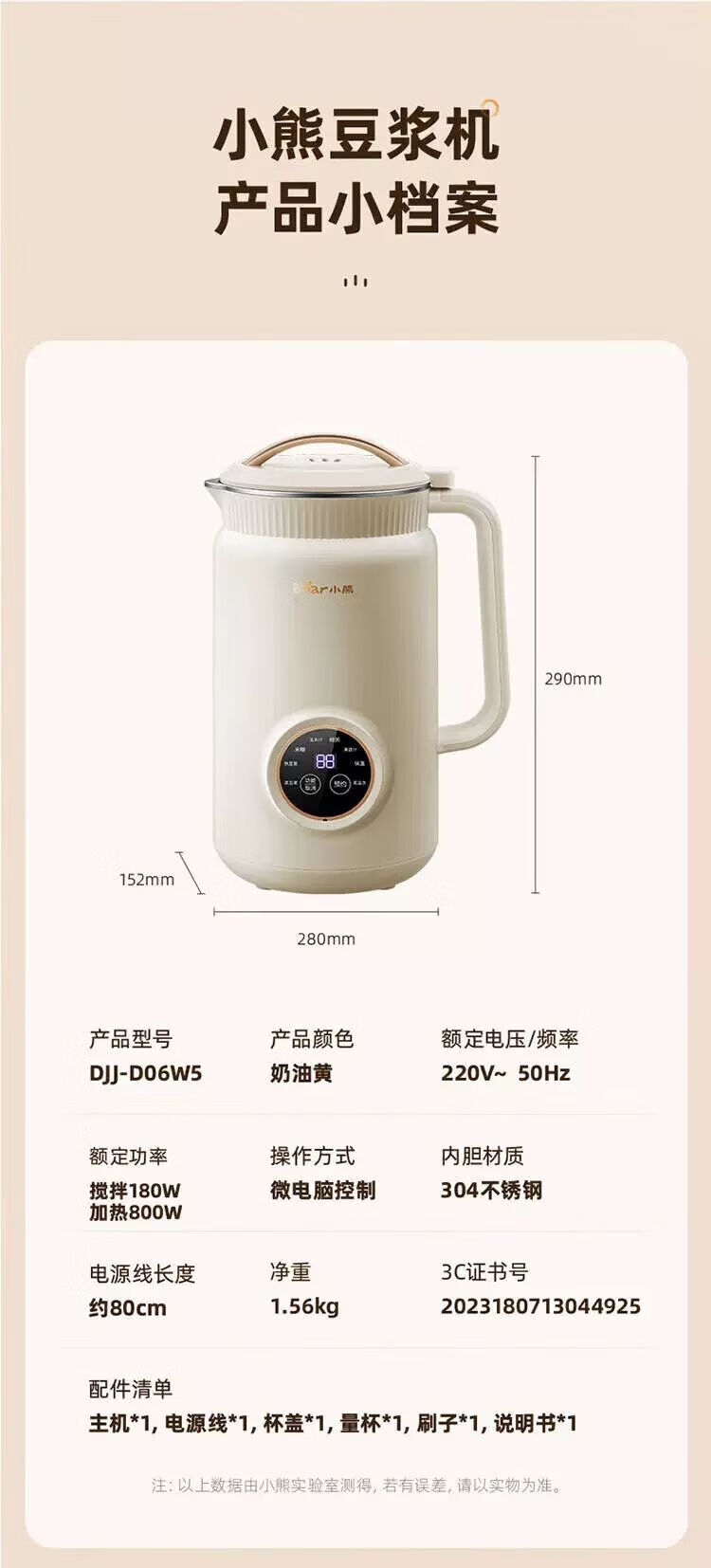 小熊 多功能破壁机 DJJ-D06W5 奶油黄 1L 1个
