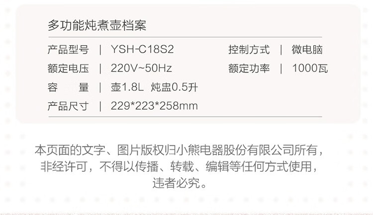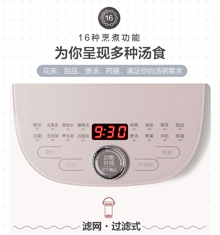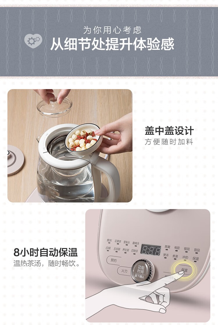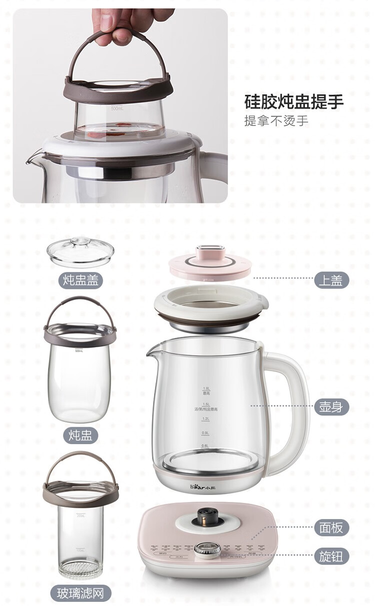 小熊 恒温电热水壶 YSH-C18S2 轻颜粉 1.8L 1个