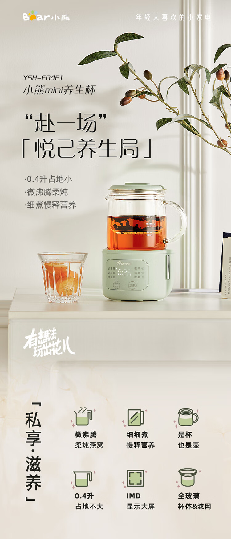 小熊 迷你养生壶 YSH-F04E1 浅绿色 0.4L 1个