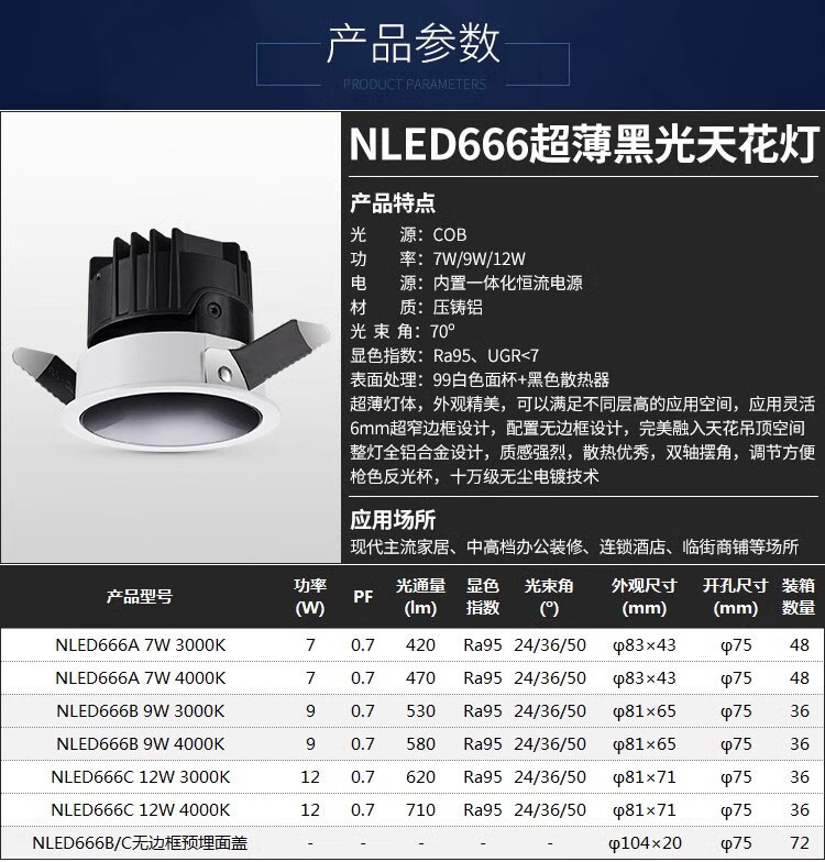 雷士 NLED666镜系列黑光射灯 NLED666A 暖白光 7W 75mm 36° 1个