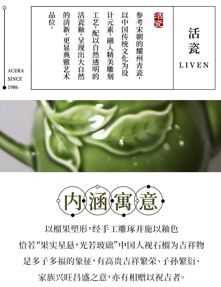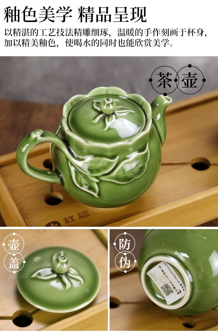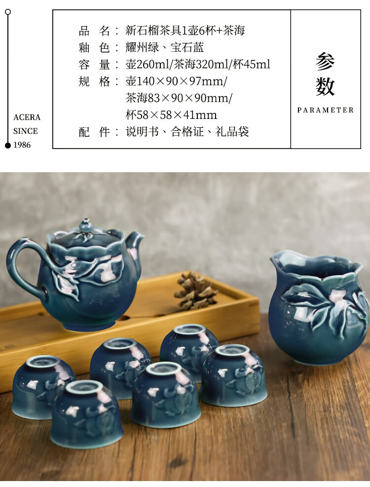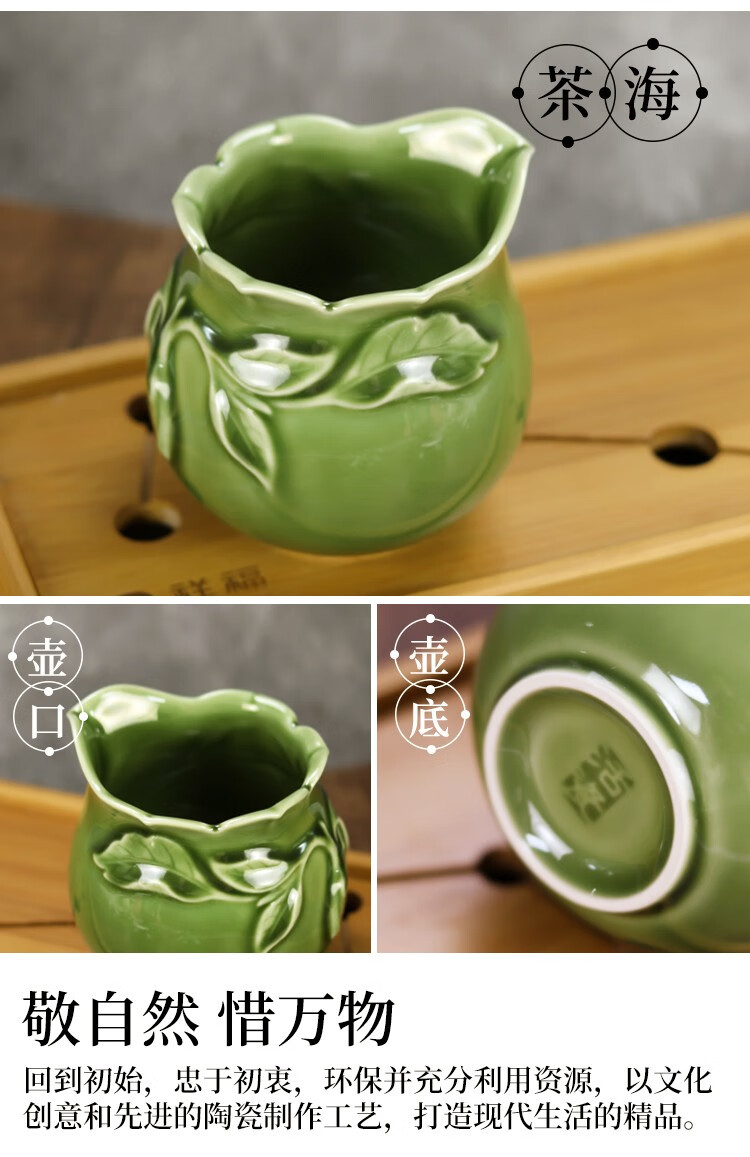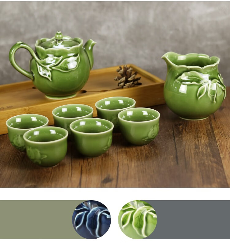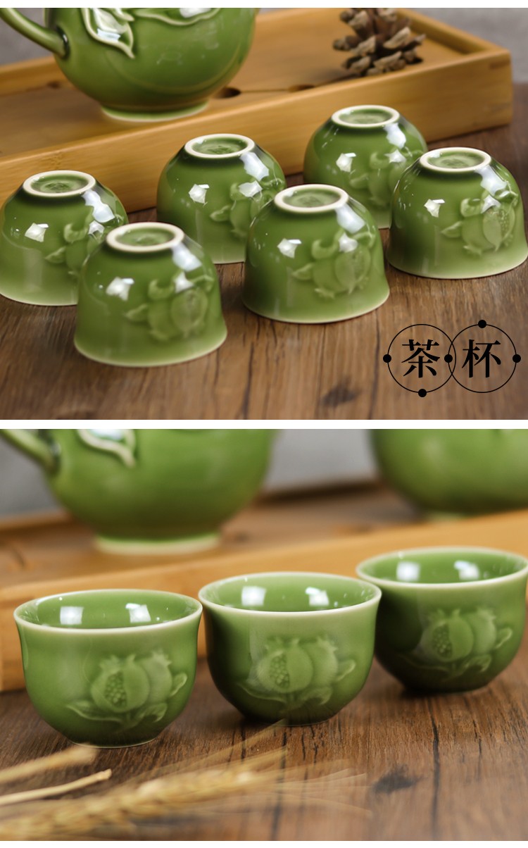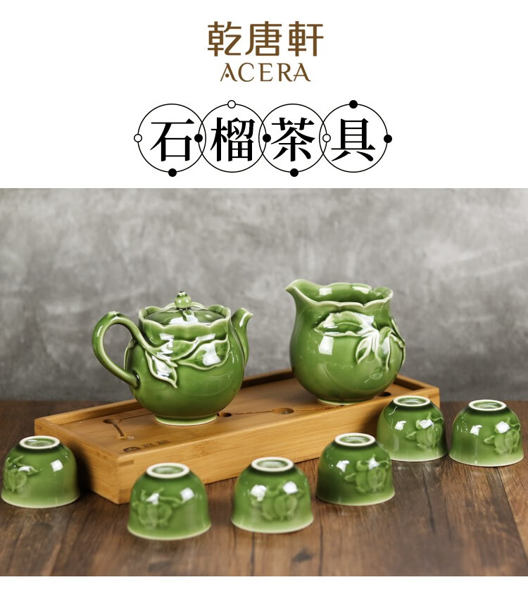乾唐轩 新石榴茶具 1壶6杯+茶海 耀州绿 壶260mL 茶海310mL 杯50mL 1套