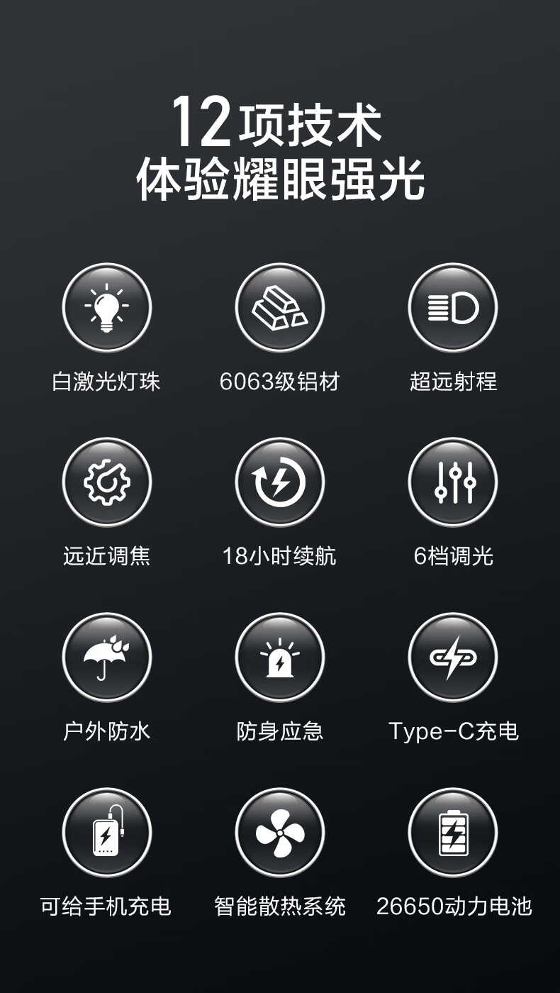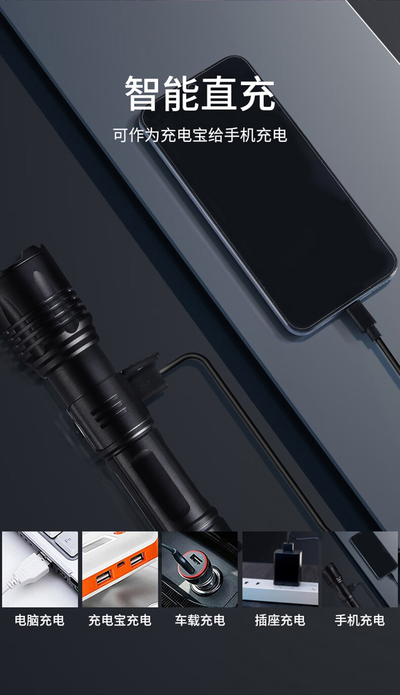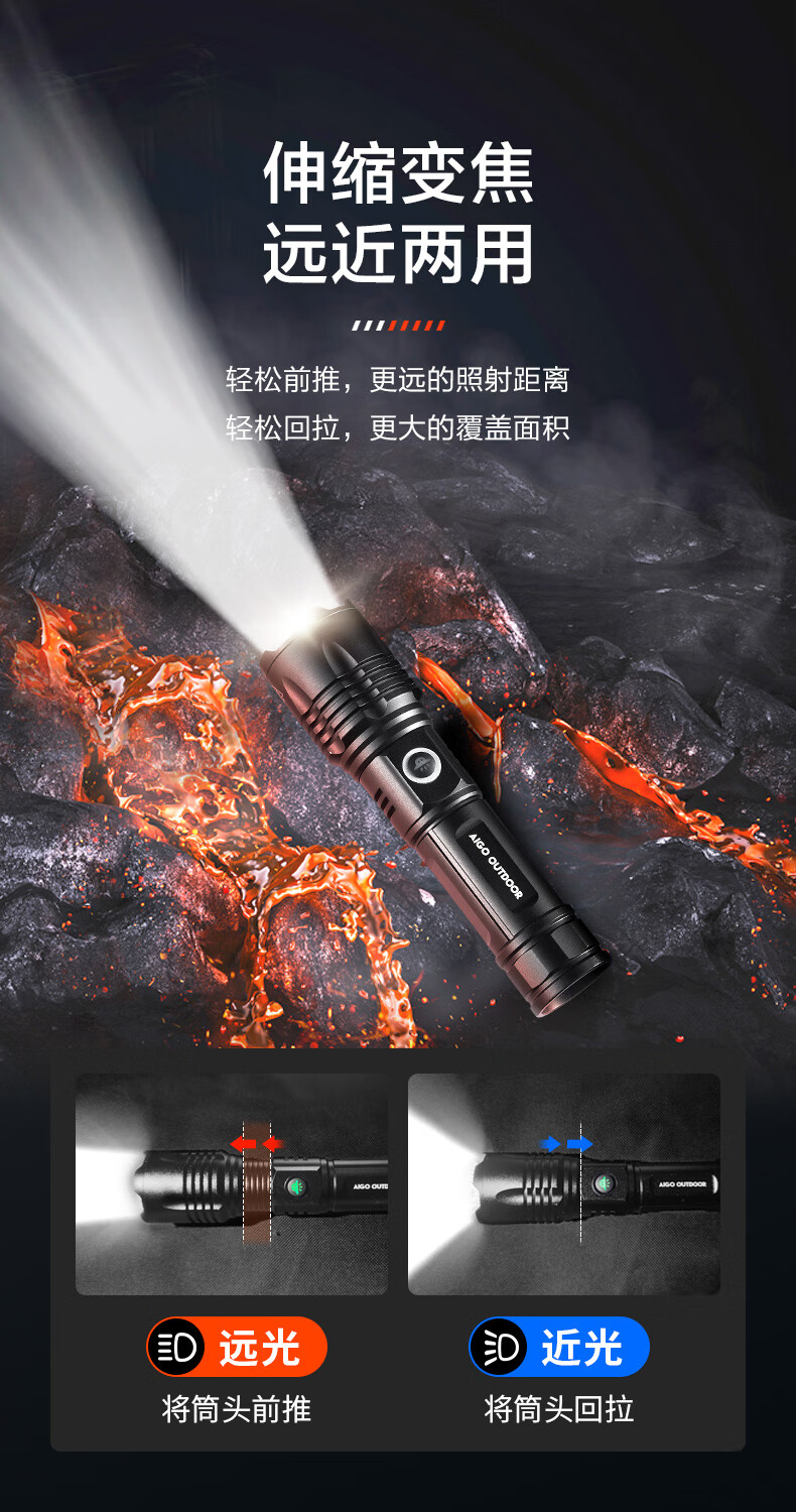 爱国者 强光手电筒 T50 10W 34*43*168mm 1个