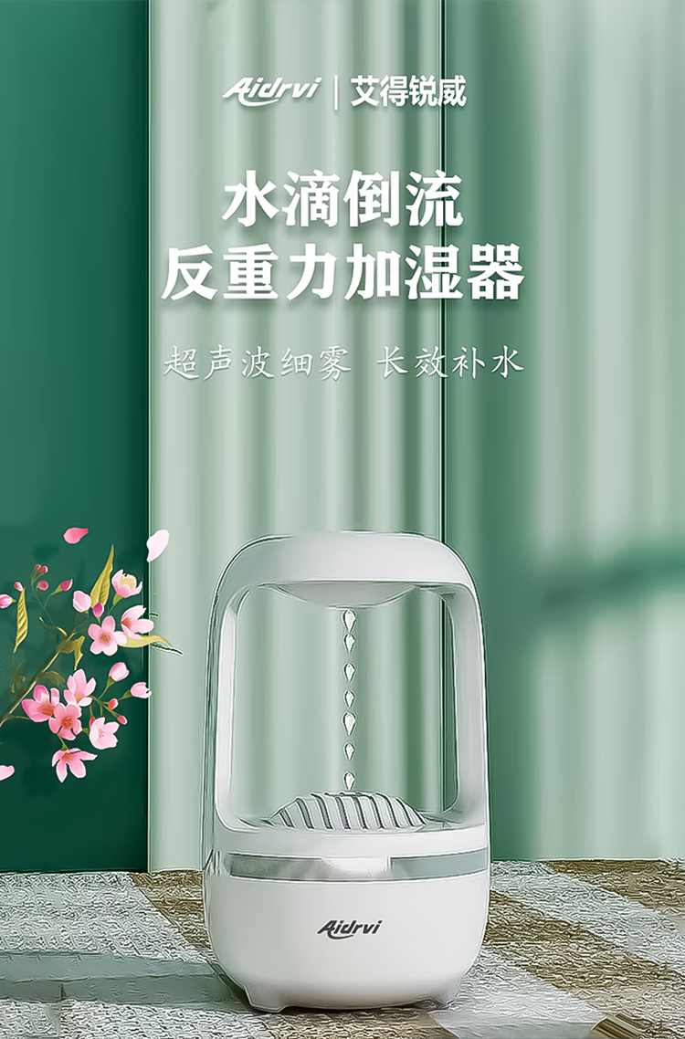 艾得锐威 超声波反重力加湿器 ADR-1314 水滴倒流 智能防干烧+大口径水箱 白色 1台
