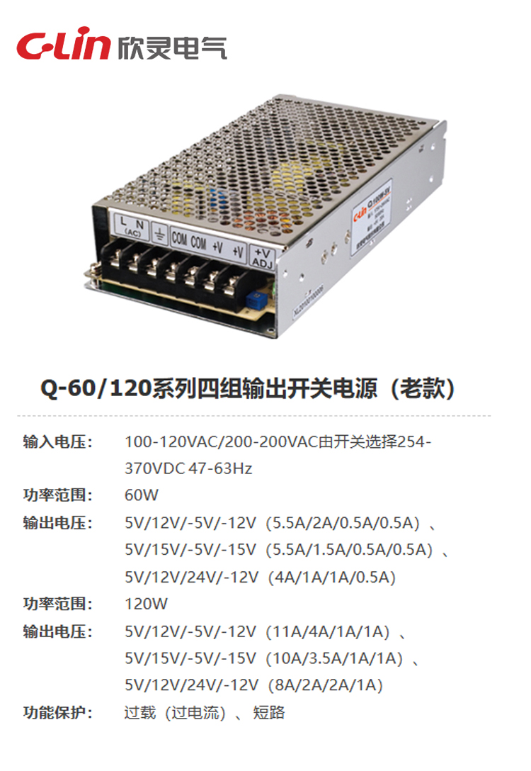 • 规格Q-120D 5V/8A 12/2A 24V/2A -12V/1A