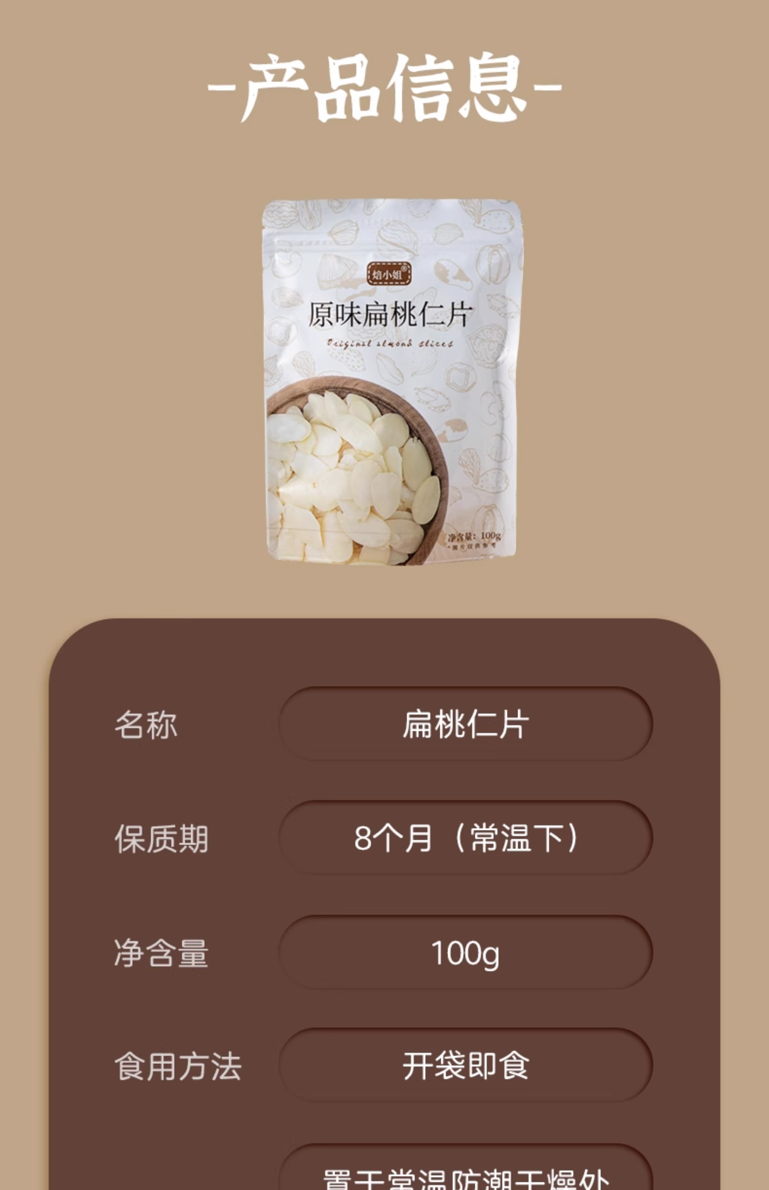 焙小姐 烘焙用原味扁桃仁片 100g 1个