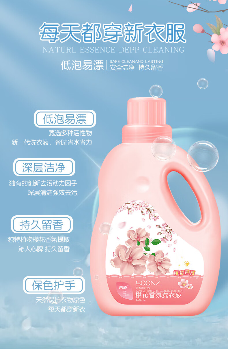 • 商品名称:束渍 香水型持久留香抑菌洁净洗衣液