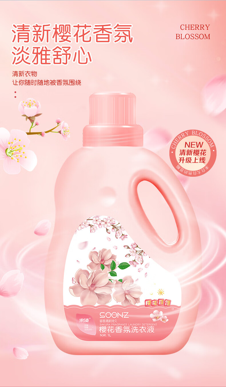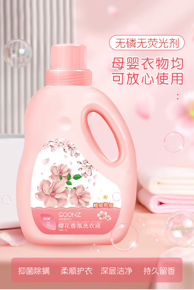束渍 香水型持久留香抑菌洁净洗衣液 樱花香型 1L 1瓶
