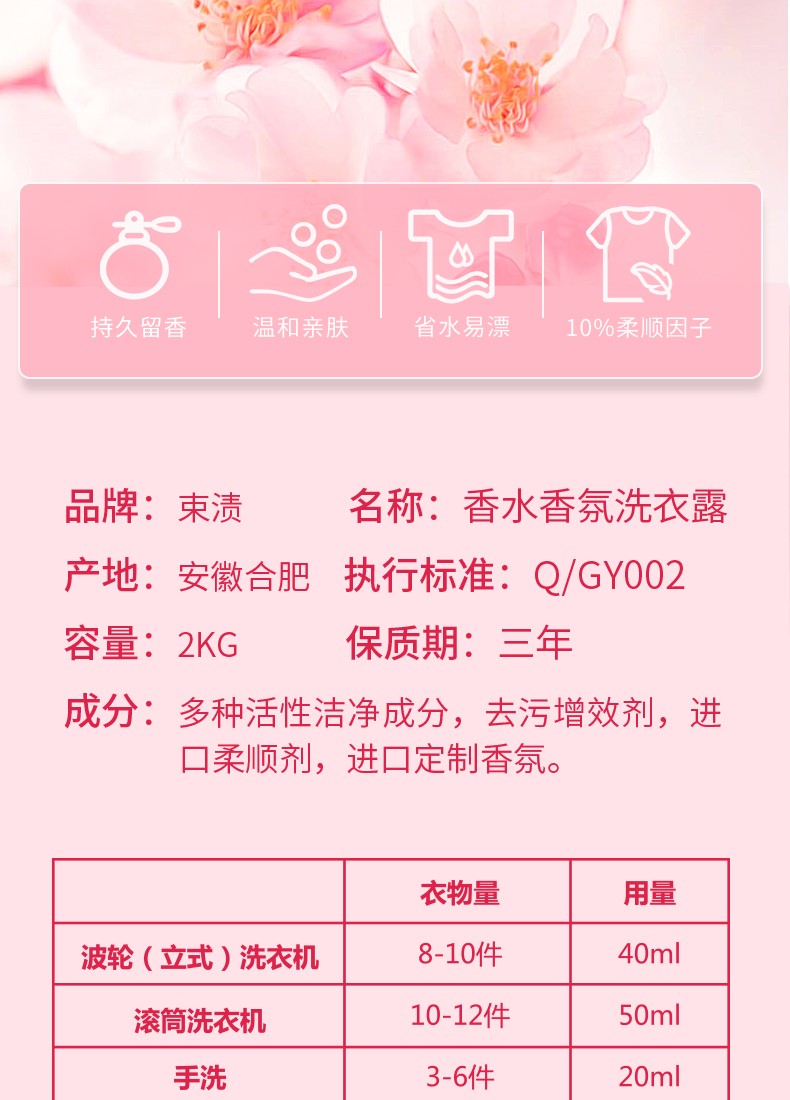 • 商品名称:束渍 香水型持久留香抑菌洁净洗衣液