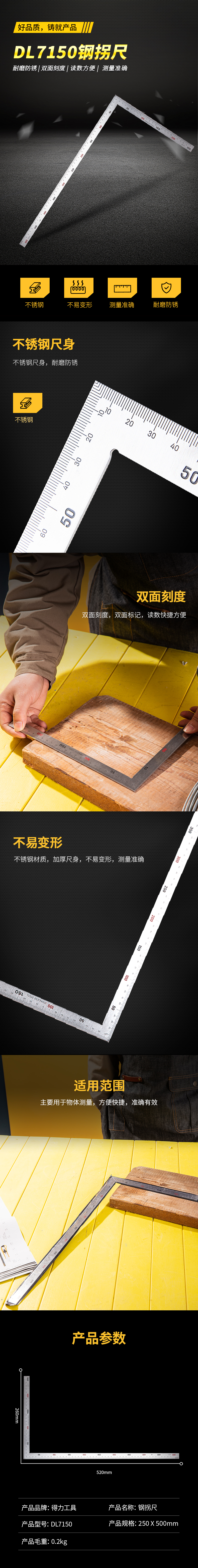 得力 钢拐尺 DL7150 银色 250*500mm 1把