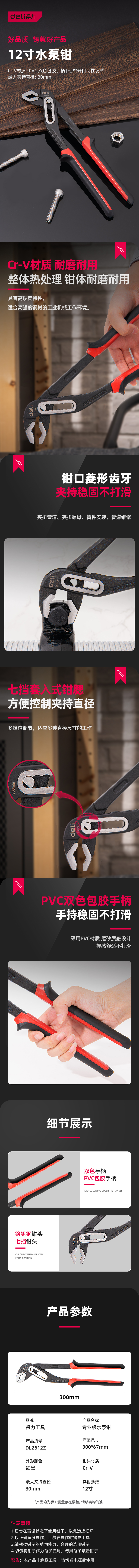 得力 专业级水泵钳 DL2612Z 红色 12寸 1把