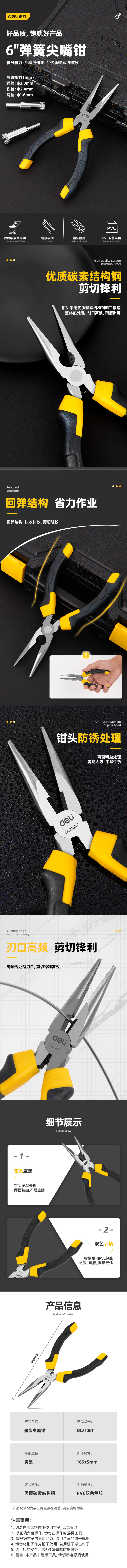得力 德式尖嘴钳 DL2106T 黄色 6寸带弹簧 1把