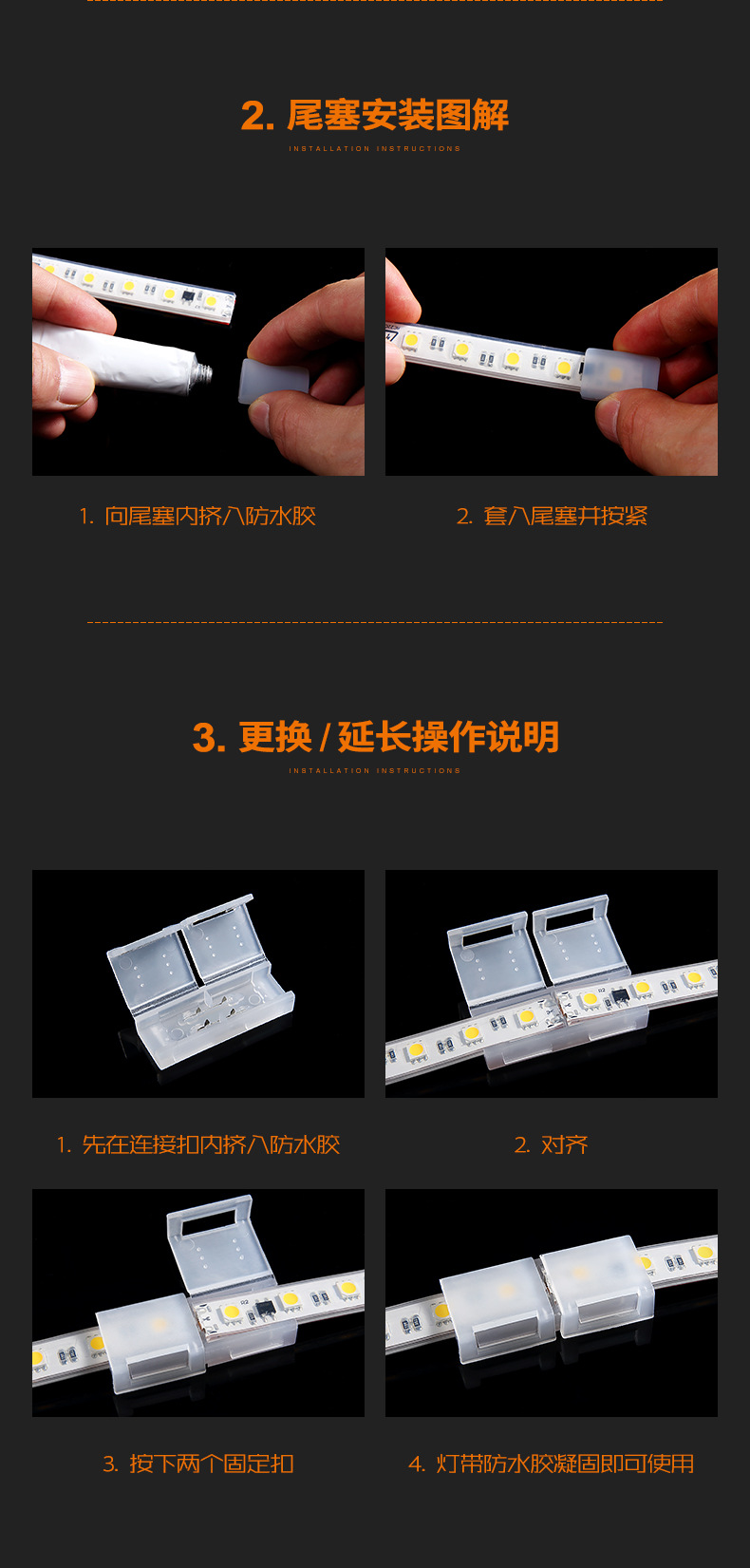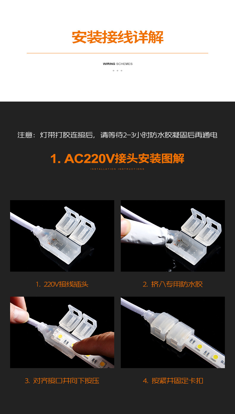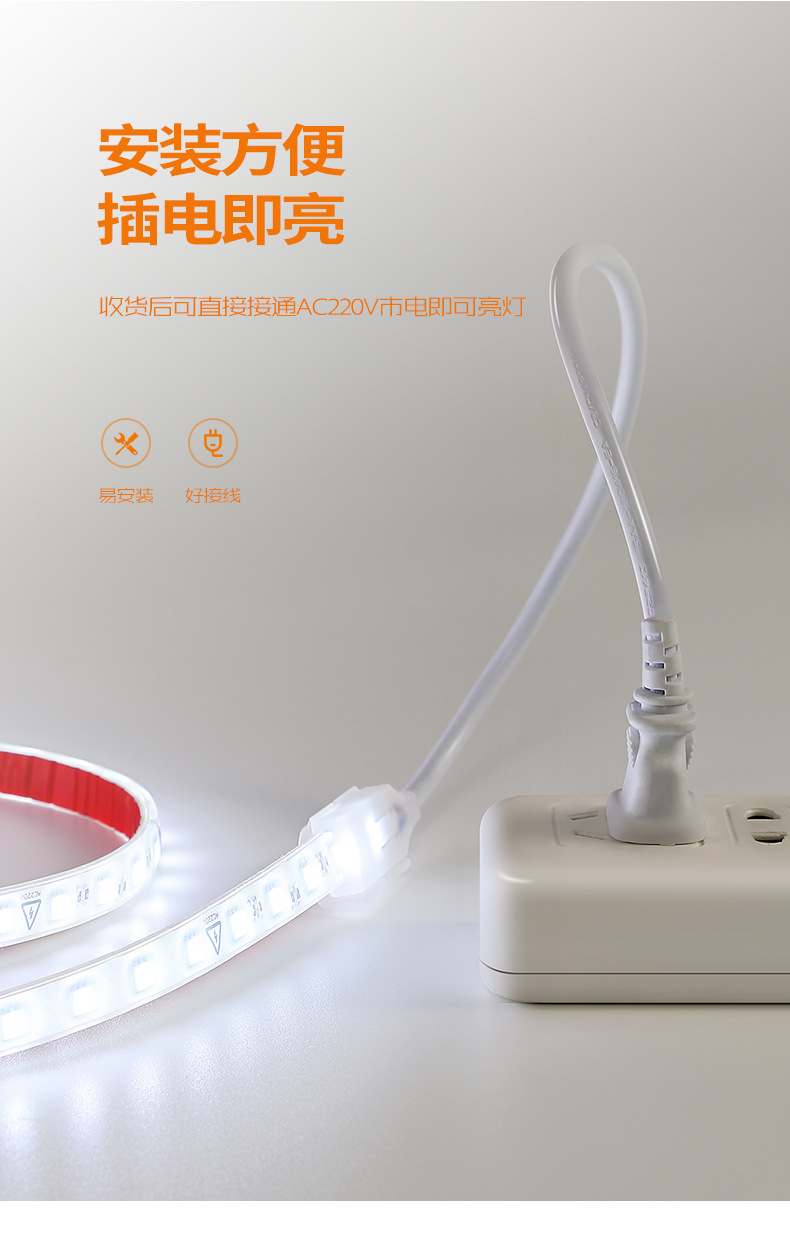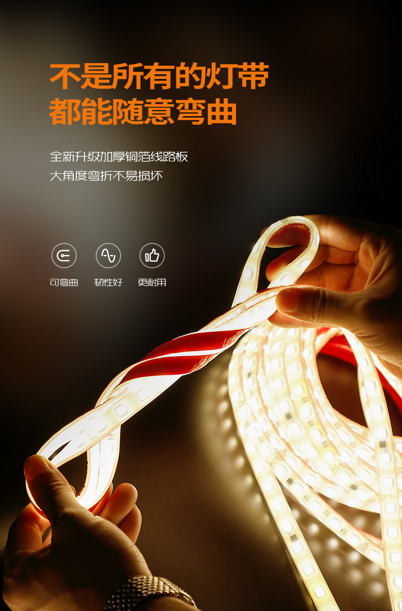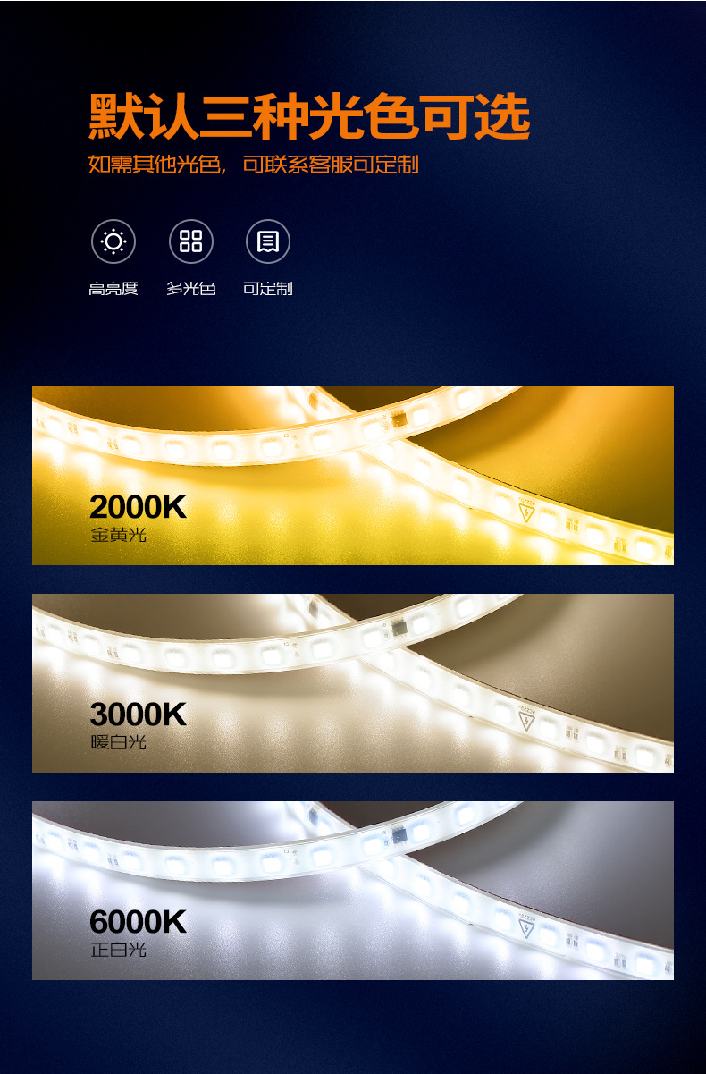 光之城 有机硅胶封装灯带 黄金版 8W 220V 户外防雨防寒1米 1卷