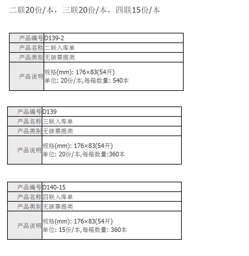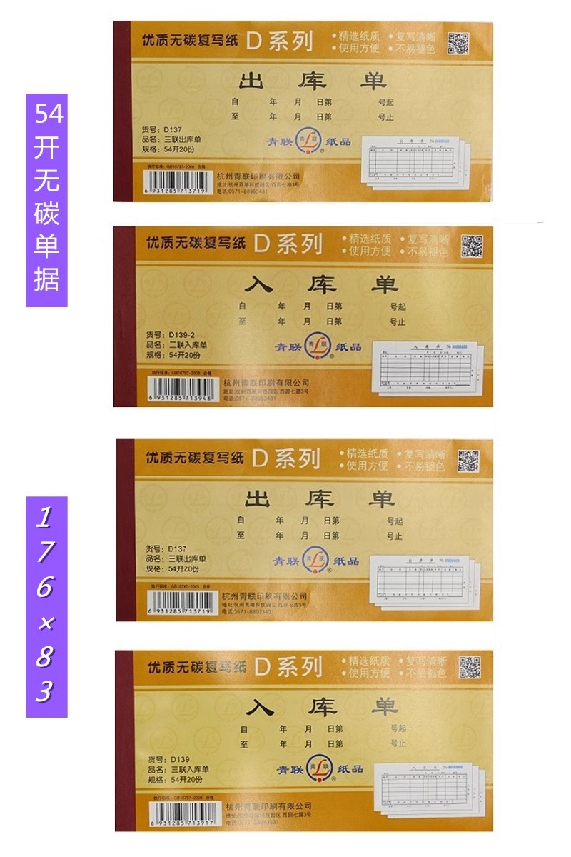 青联 入库单 D139-2 54开 20份 1本