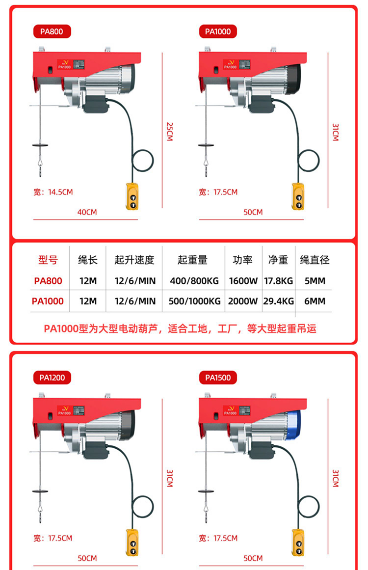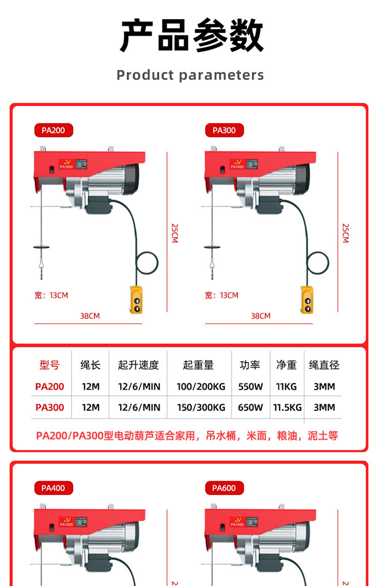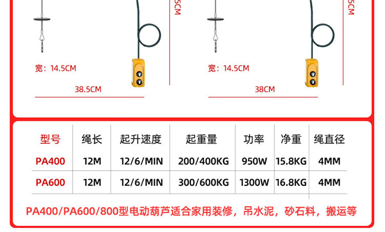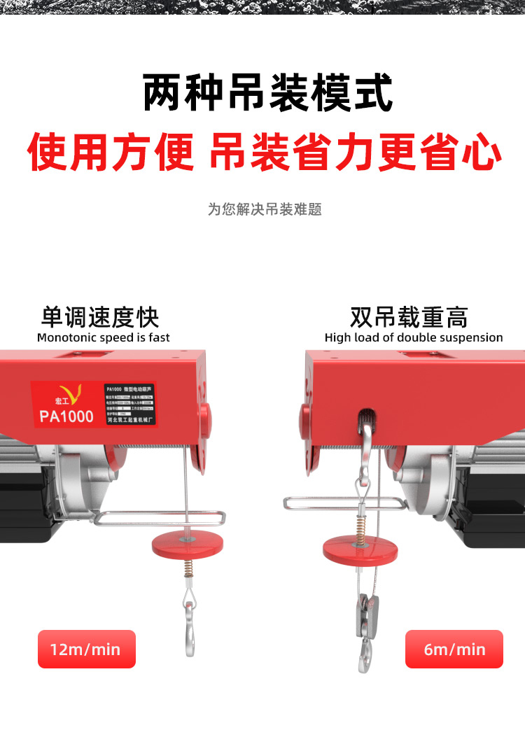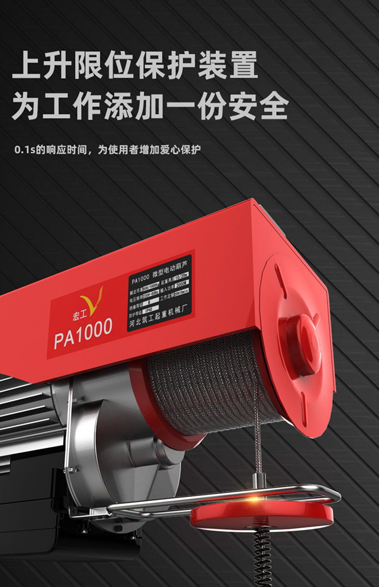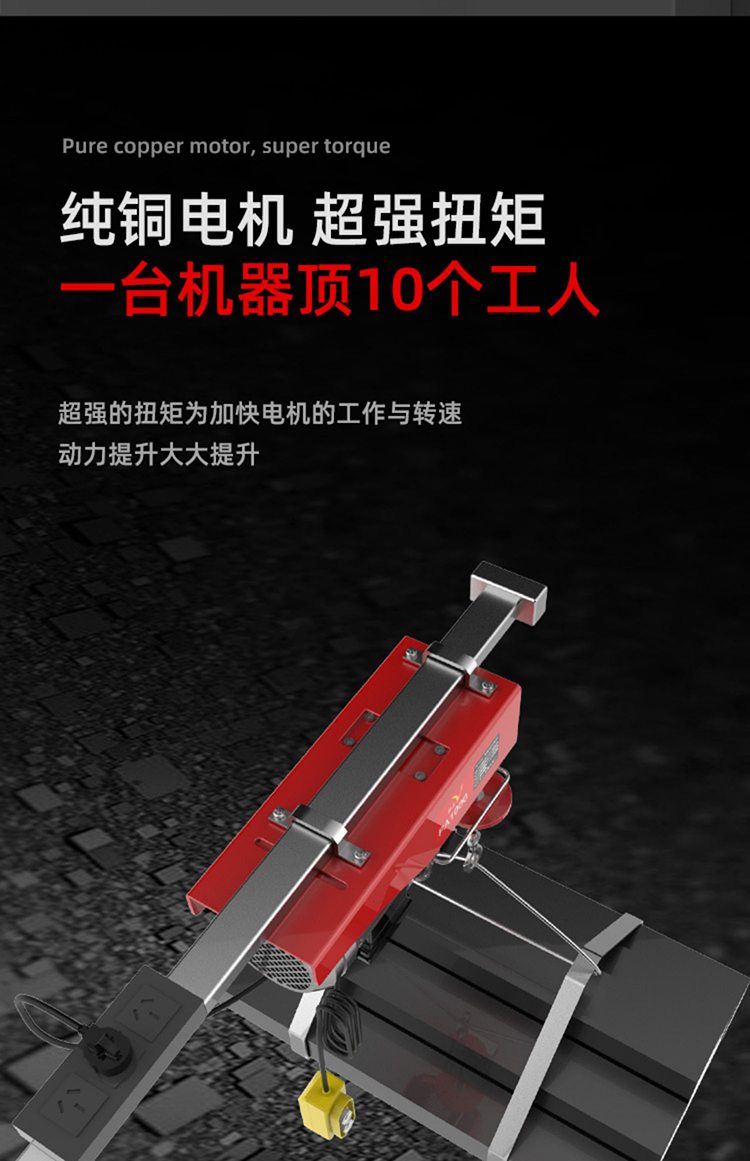 宏工 微型电动葫芦220V家用小型吊机 起重机 200-400公斤30米【送14件套】1套
