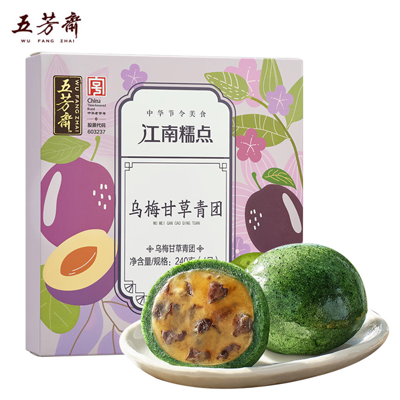 五芳斋 江南特产中华老字号青团 乌梅甘草 60克 4只 1盒