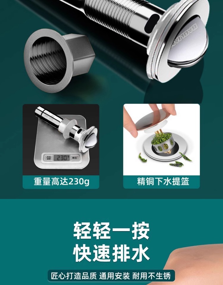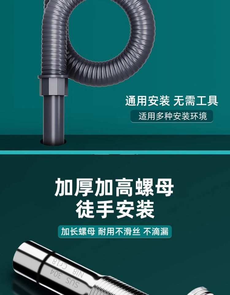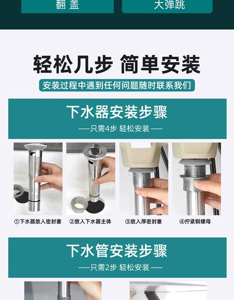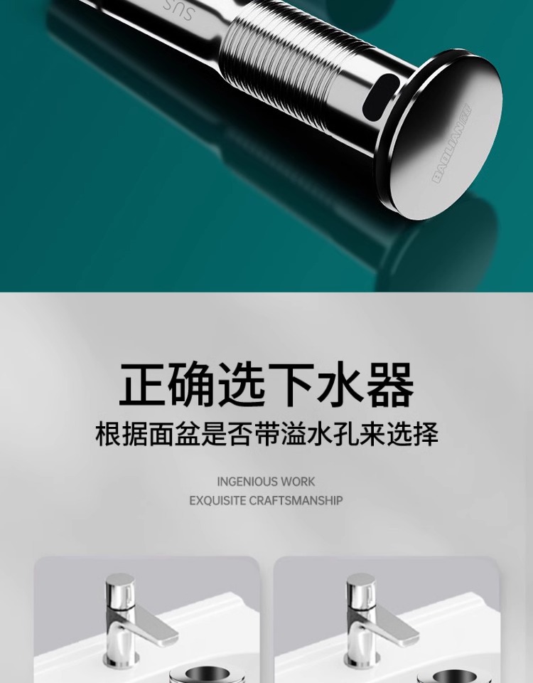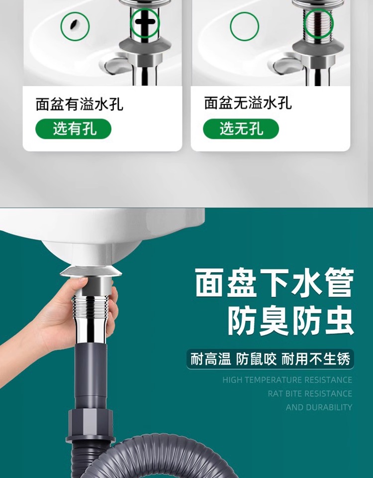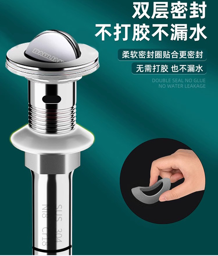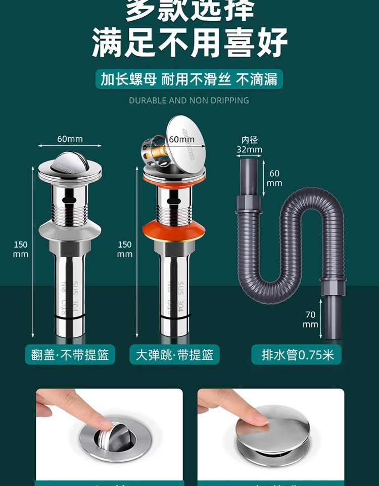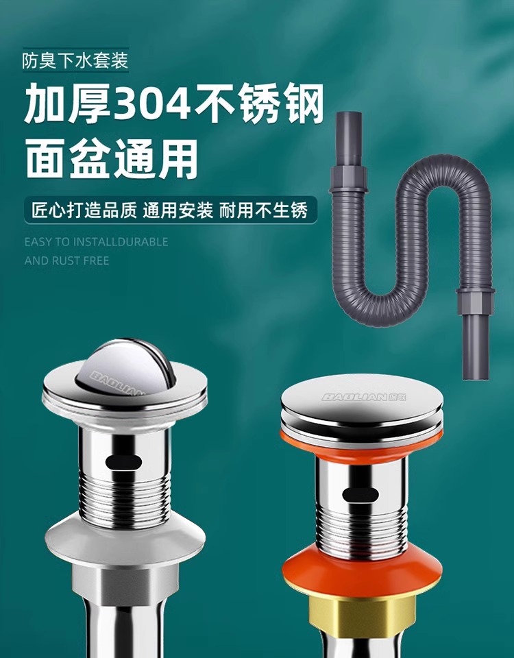 保联 面盆下水器配件 升级款【加厚304+不锈钢螺母】有孔下水器(翻盖版)+加厚钢丝下水管 1套