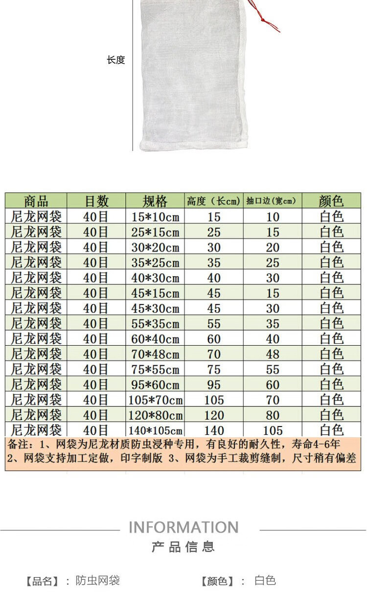 稳斯坦 尼龙防虫网袋 WJL81 白色 40目 15*10cm 100个 1件