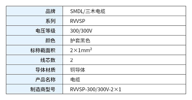 三木电缆 电缆 RVVSP-300 300V-2×1 护套黑色 1米