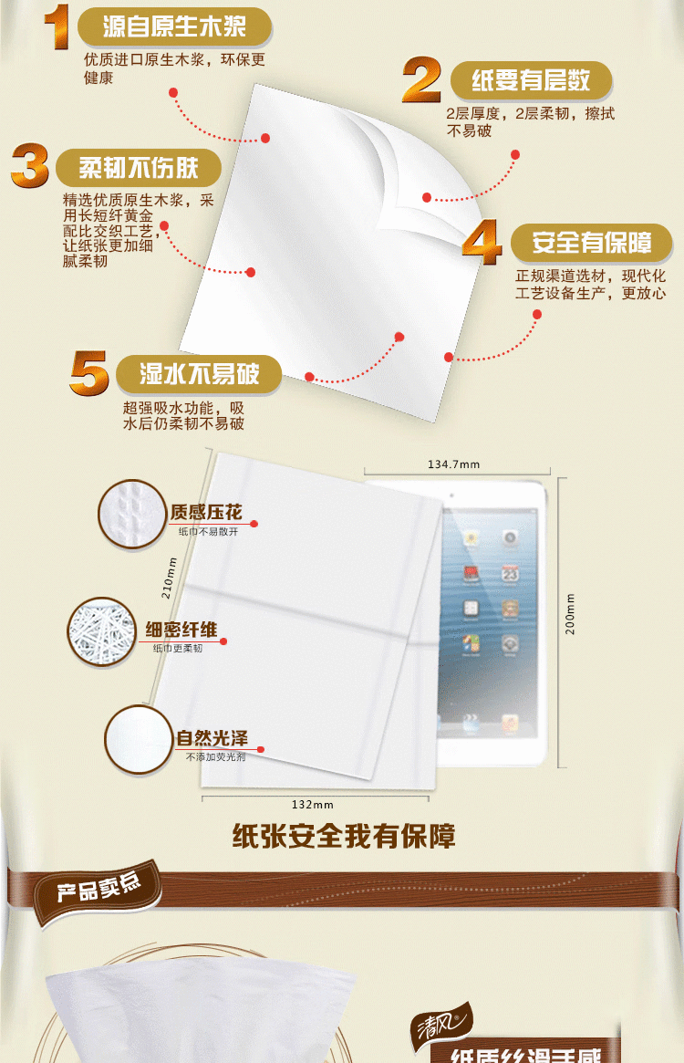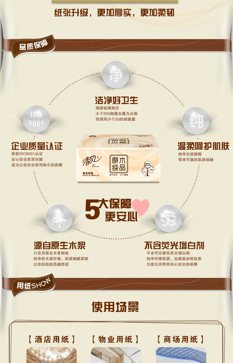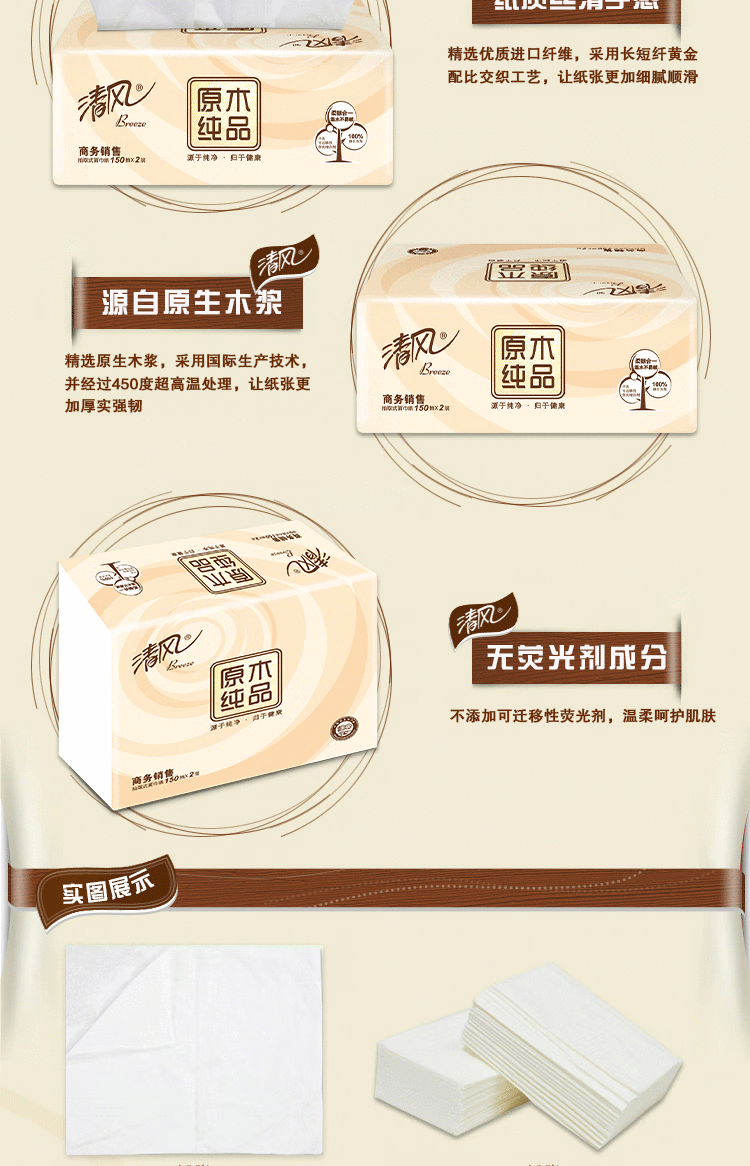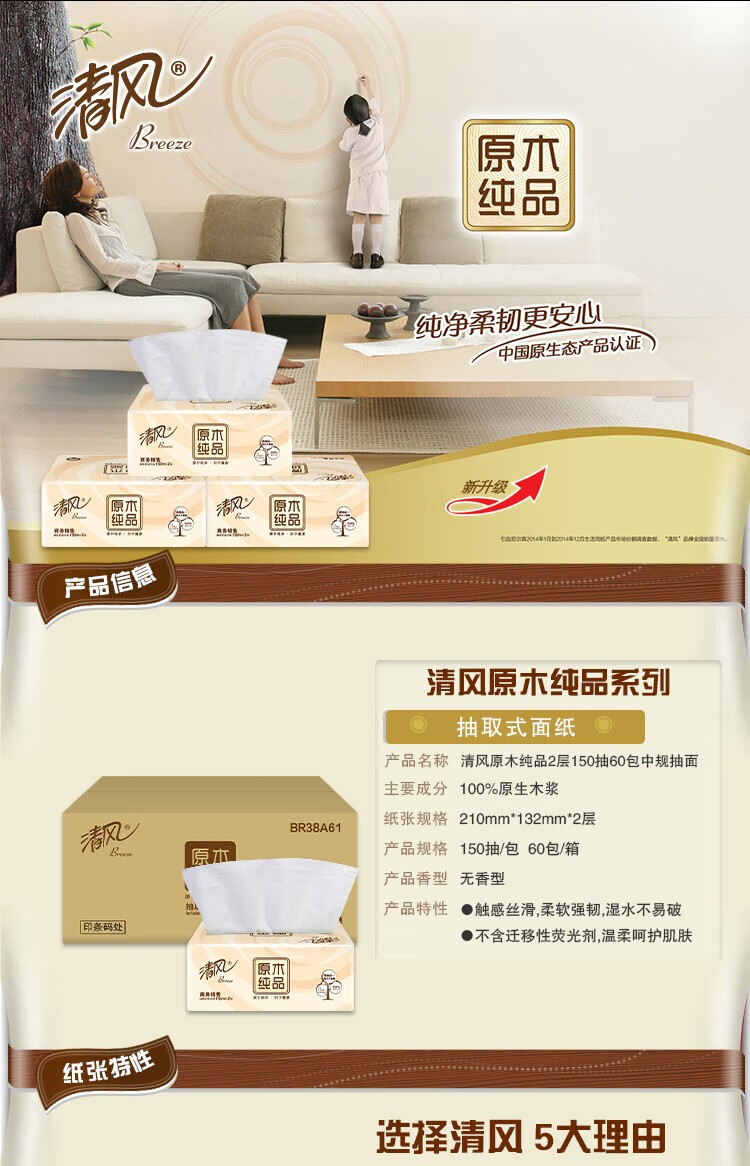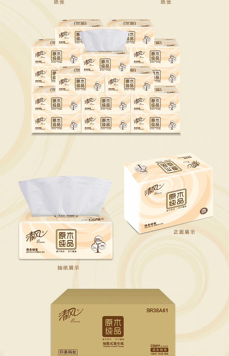 清风 抽纸 BR38A61 210×132mm 2层 150抽 3包 1提