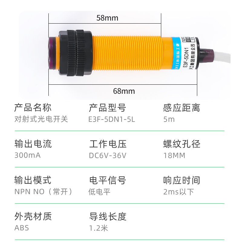 沪工 开关传感器 E3F-5DN1-5L(常开) 1个