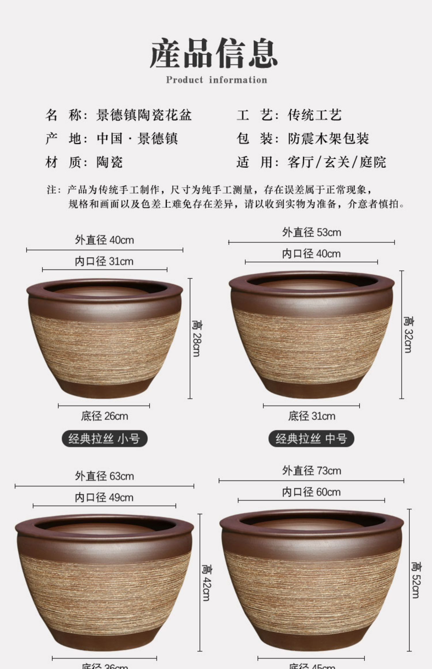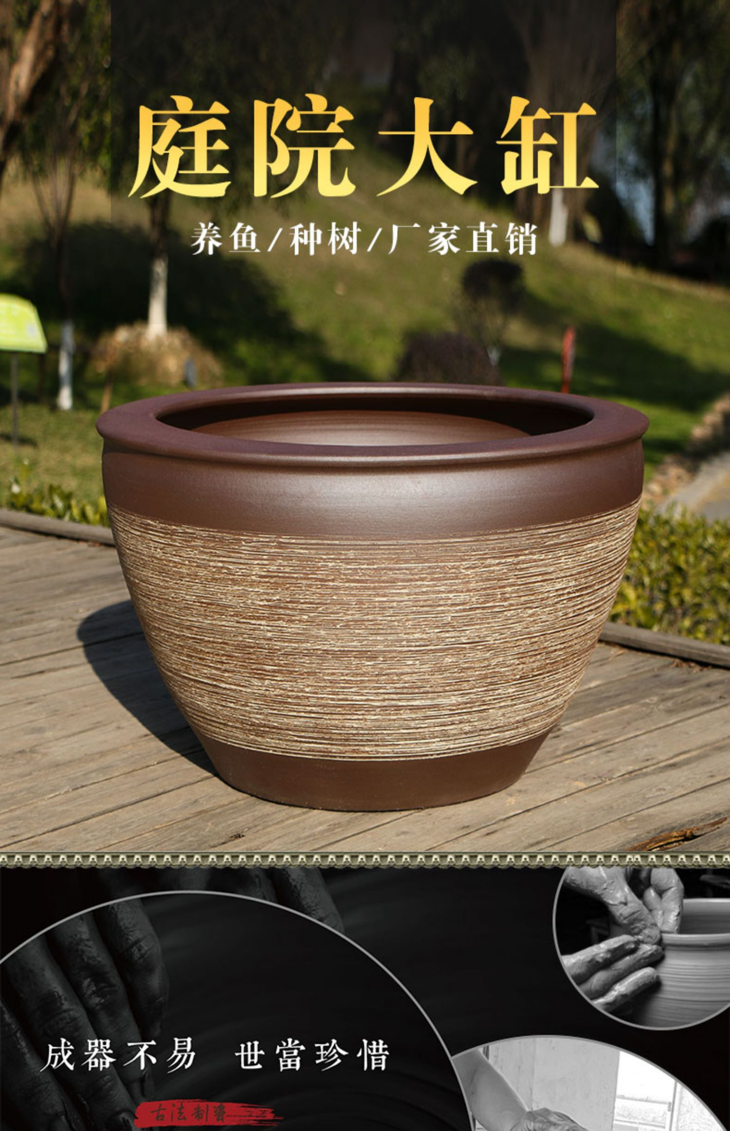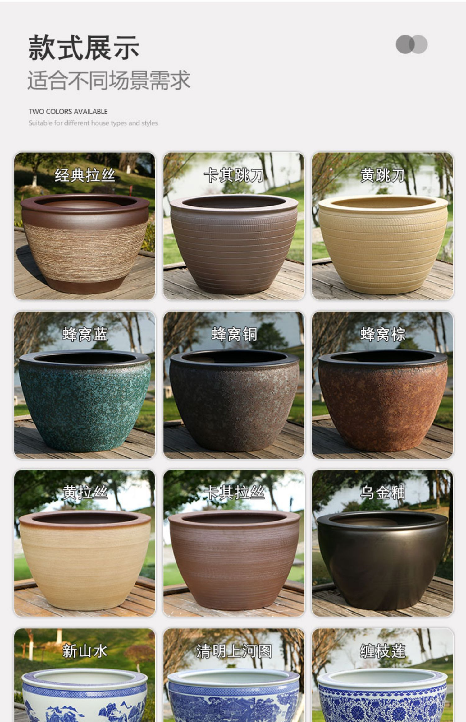希欢 景德镇庭院大水缸 陶瓷 直径63cm高42cm 有孔 1个