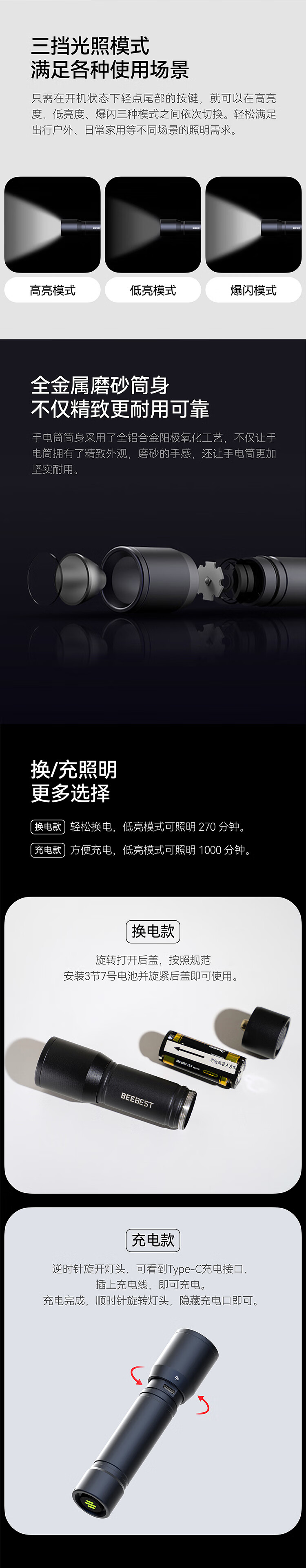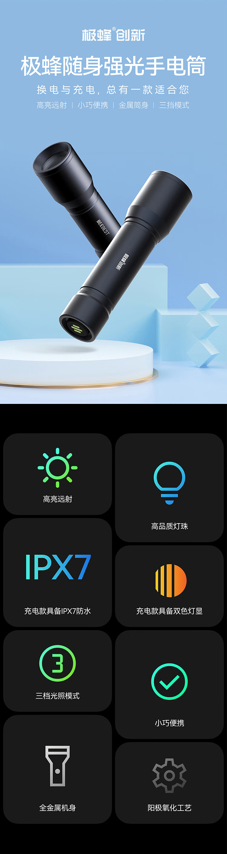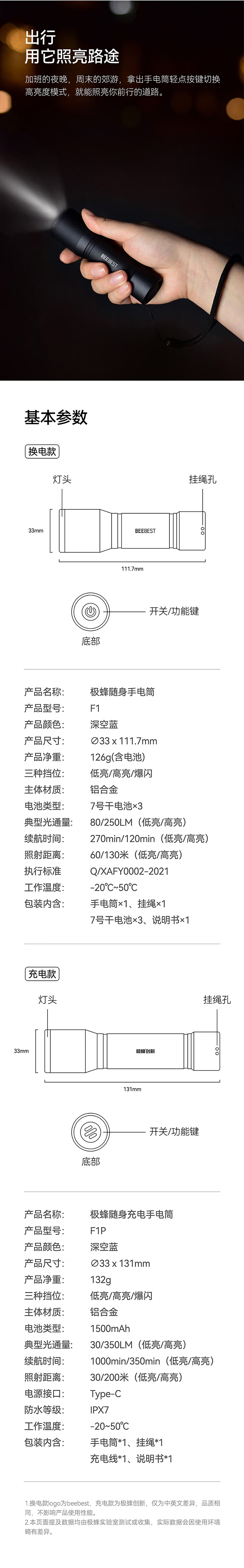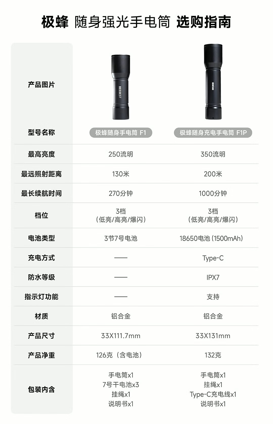 极蜂 随身手电筒 F1 三挡 160g 1个