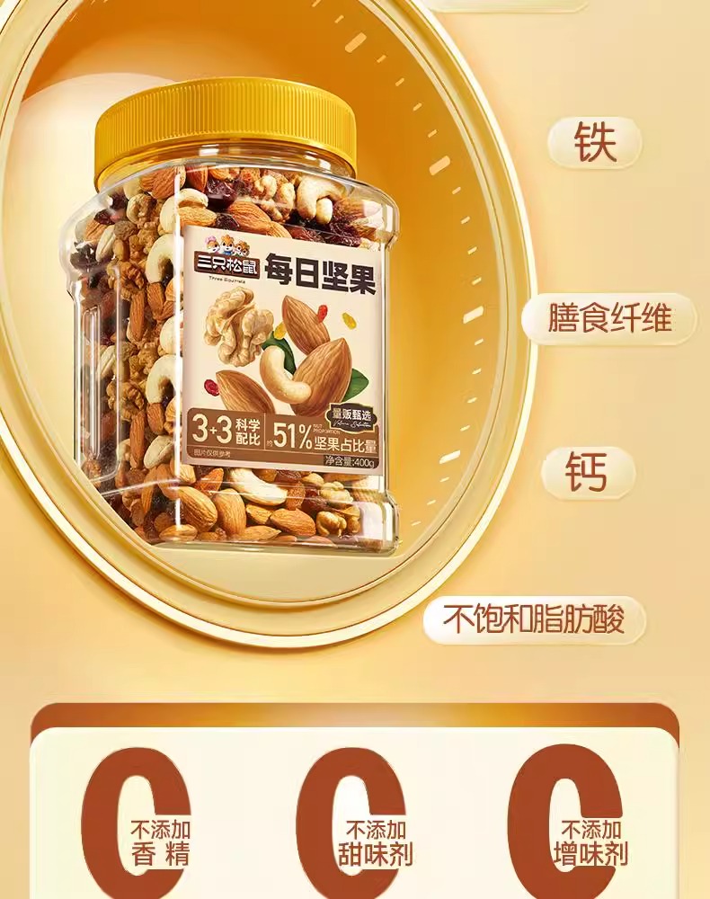 三只松鼠 每日坚果 500g 坚果*3种+果干*3种 1罐