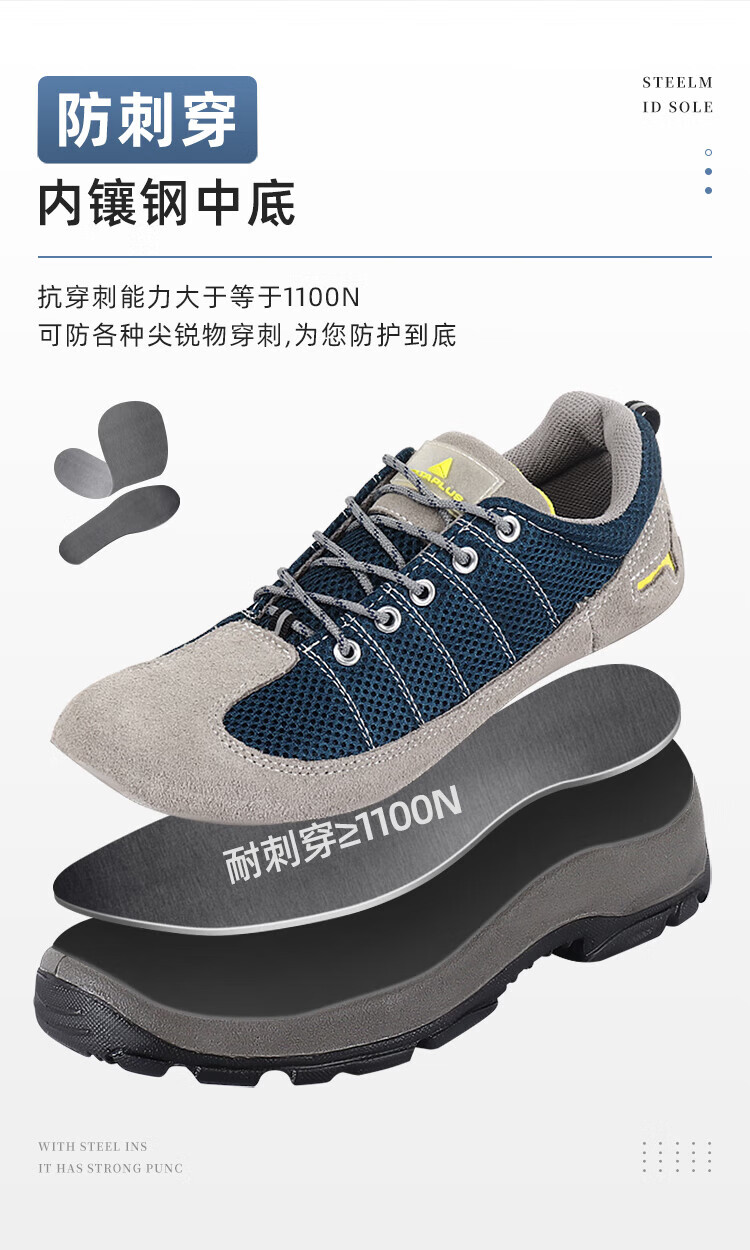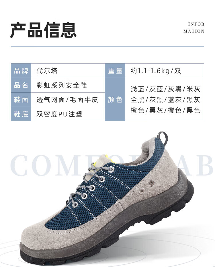代尔塔 彩虹系列劳保鞋 301232 灰蓝色 37码 1双
