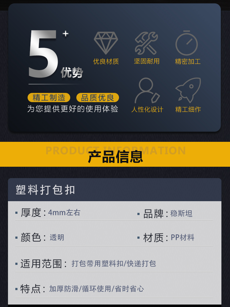 稳斯坦 透明塑料打包扣 WST121 适用于宽11厚0.7打包带 1000个 1件