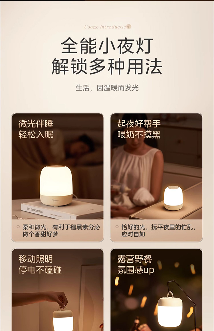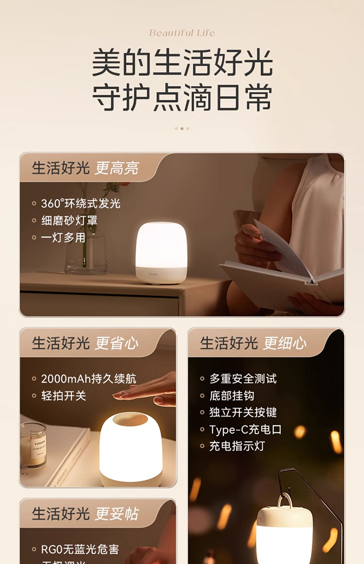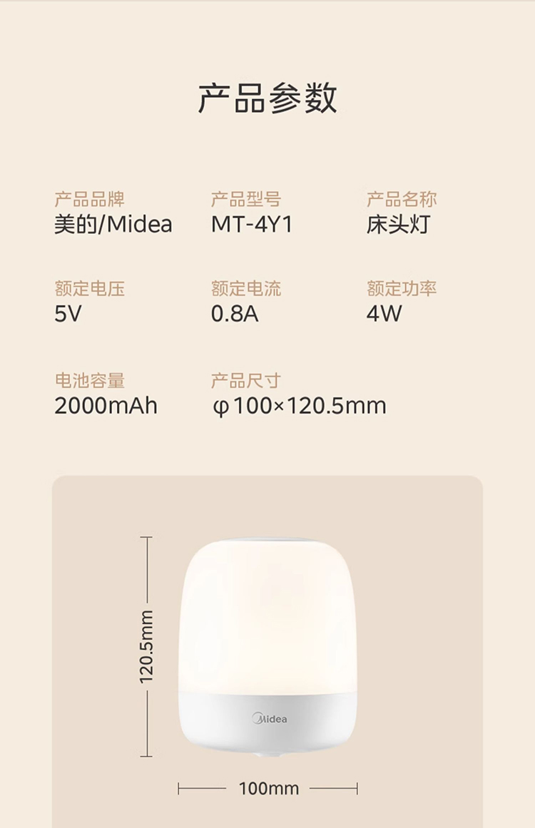 美的 床头灯 MT-4Y1 4W 触摸调光款 φ100×120.5mm 1个