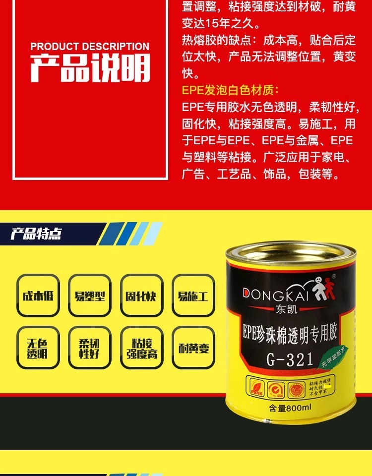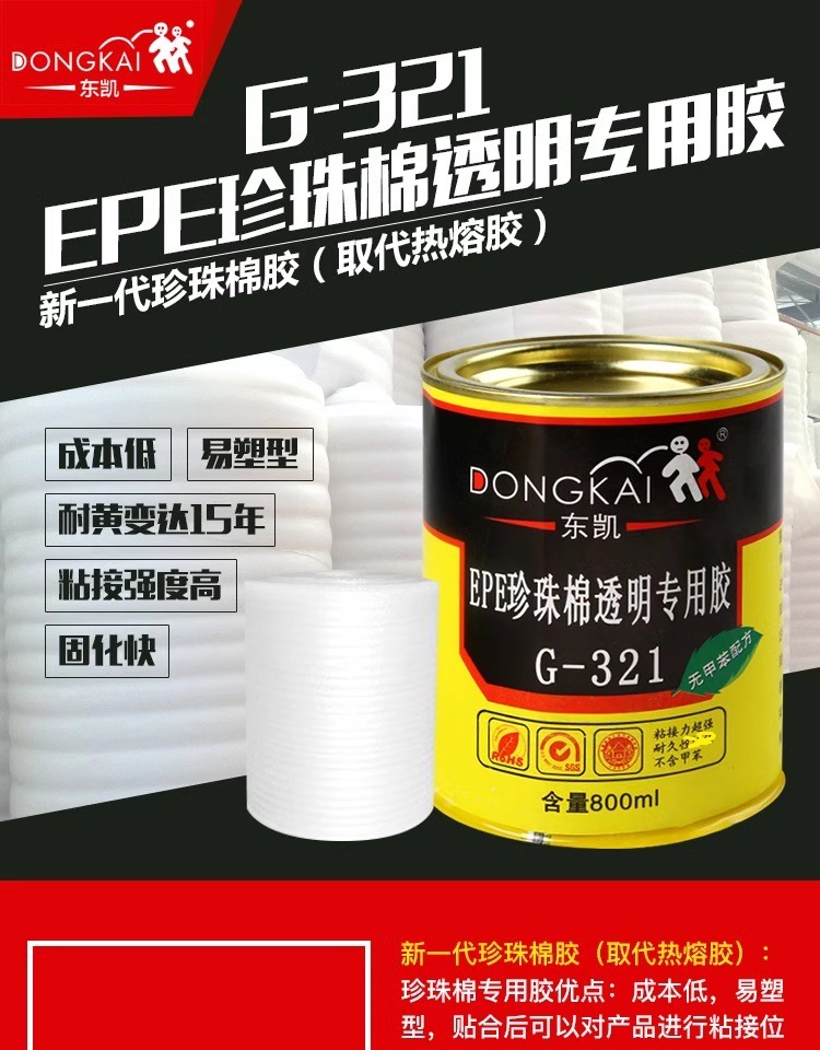 东凯 EPE珍珠棉透明专用胶 G-321 800ml 1瓶