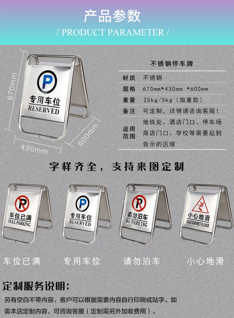 赫思迪格 不锈钢A字告示牌 JG-1618 禁止停车 1个