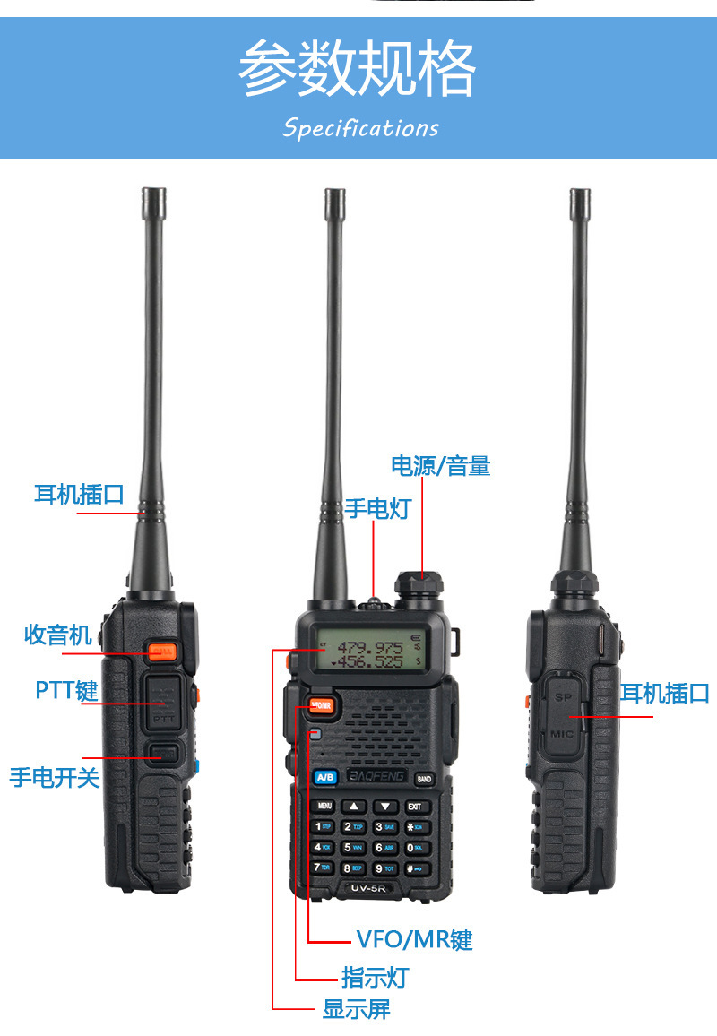 宝锋 升级版对讲机 UV-5R UV双段手台双频 110*58*32mm 1个