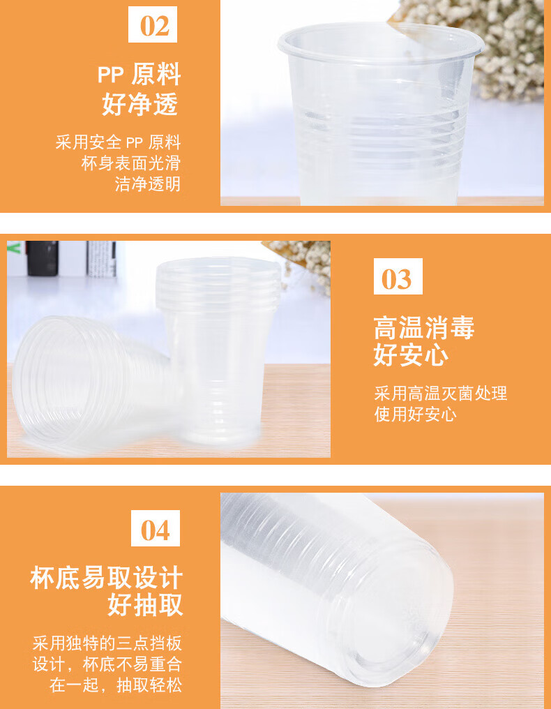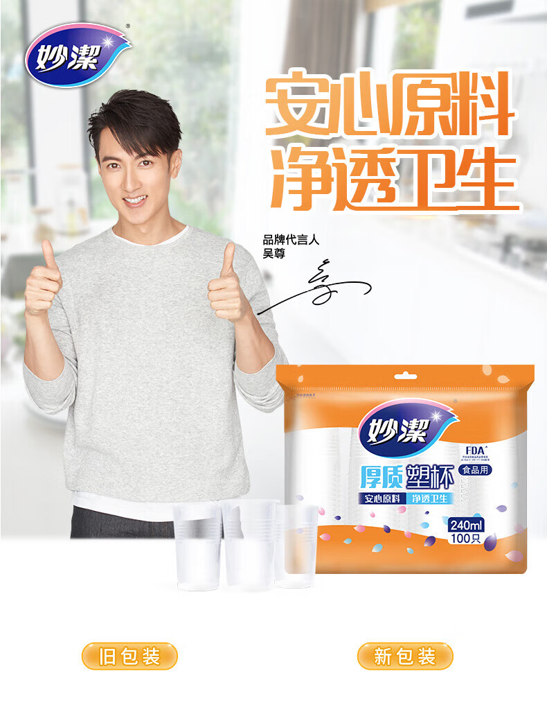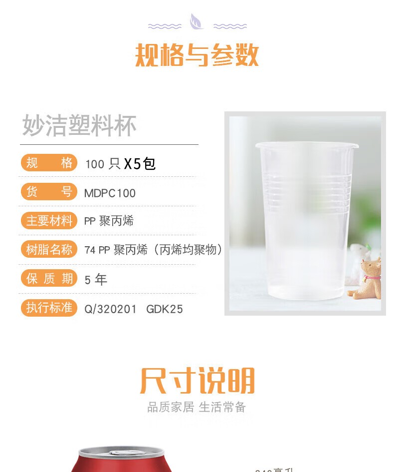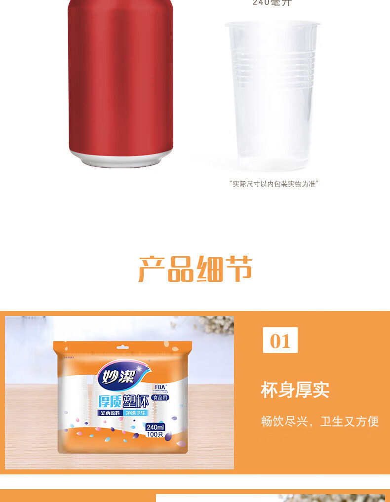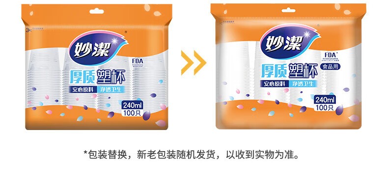 妙洁 一次性厚质塑杯 MDPC100-B 240mL 100只 1包