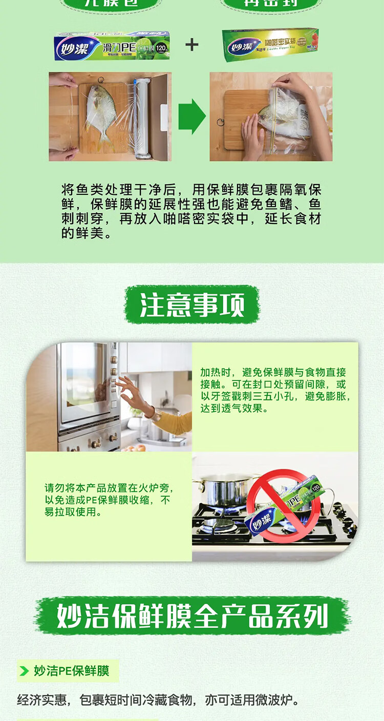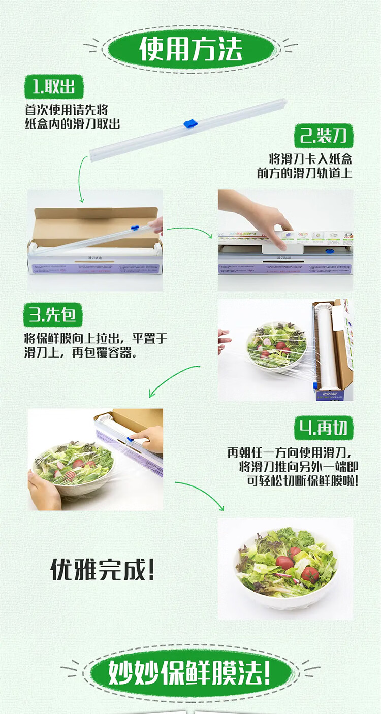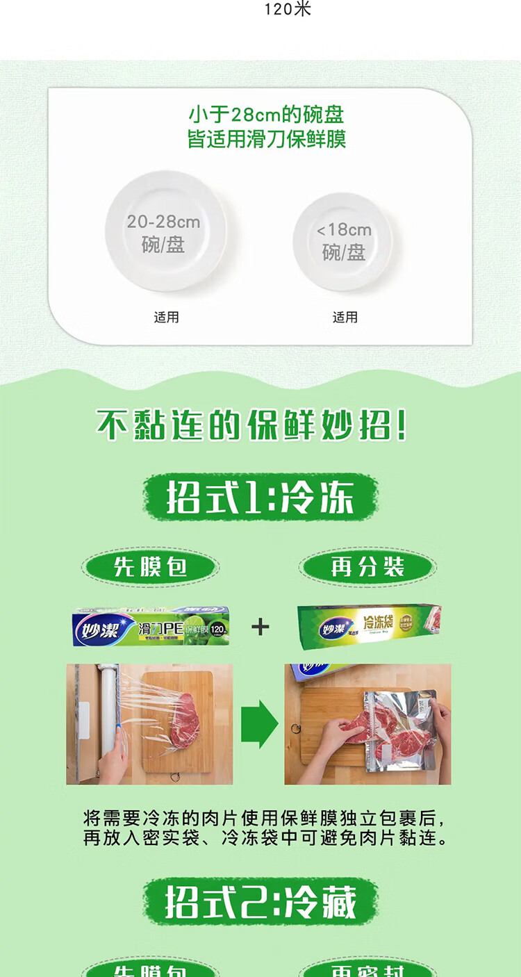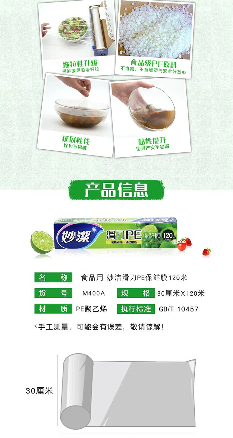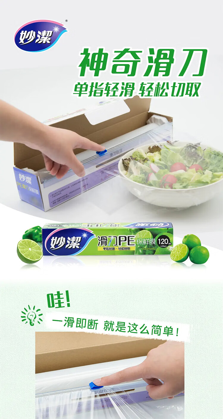 妙洁 滑刀PE保鲜膜 M400A 30cm×120m 15盒 1箱