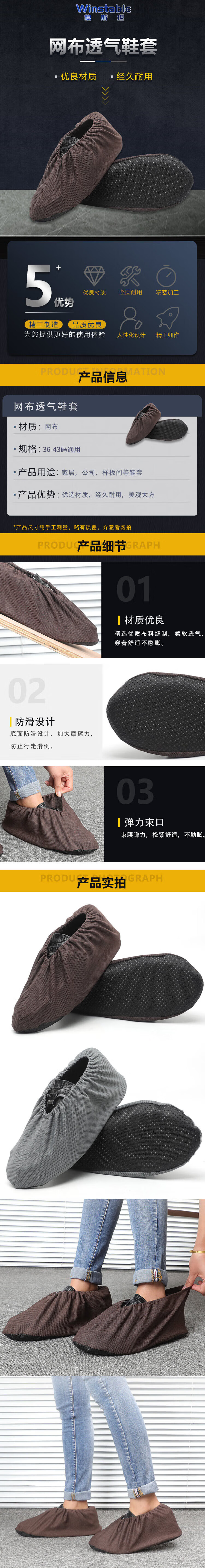 稳斯坦 网布透气鞋套 W5552 咖啡色 36-44码通用 5双 1件