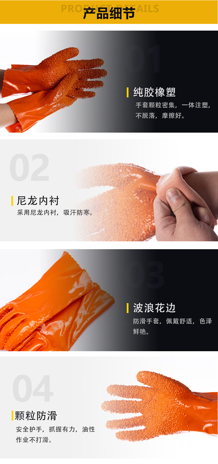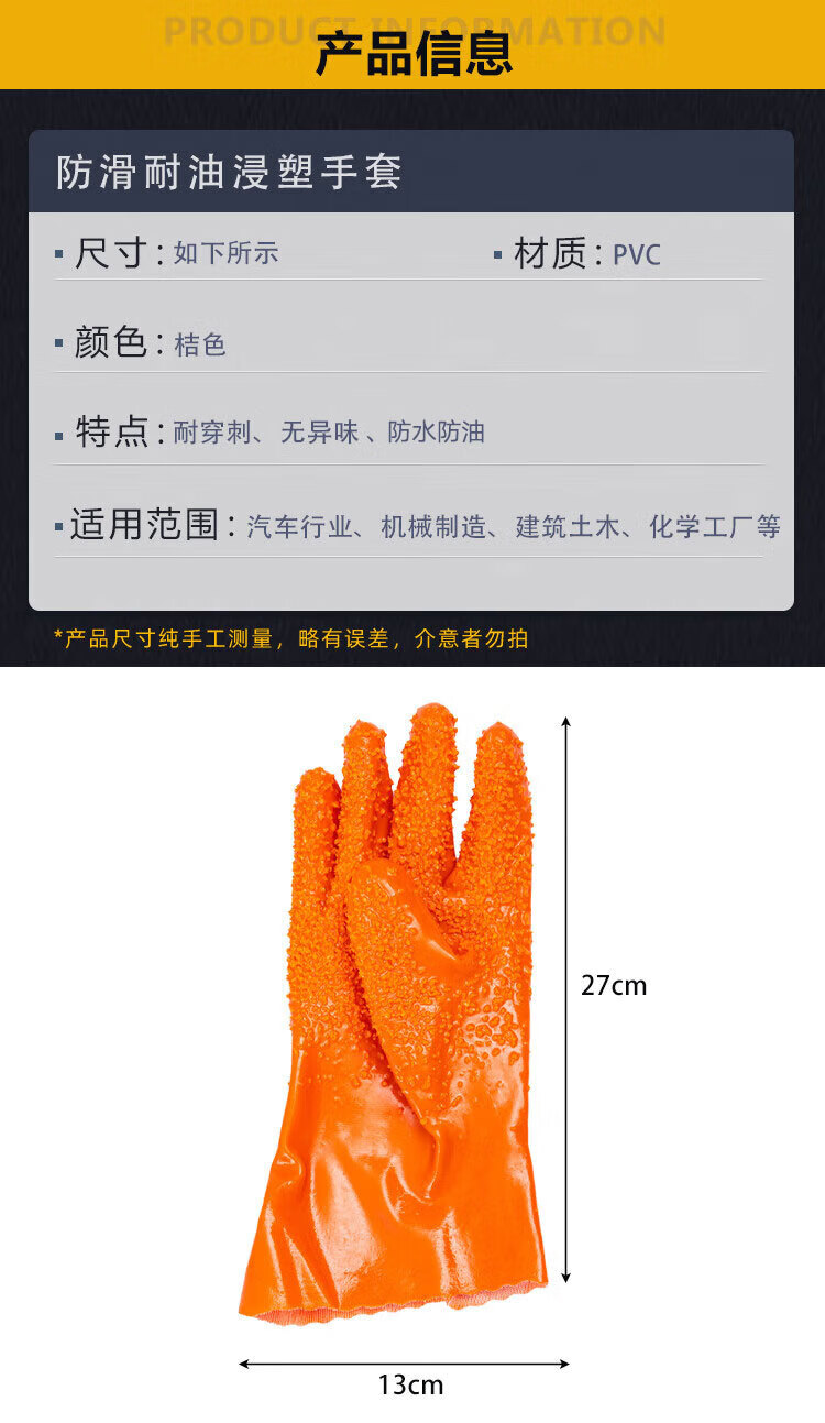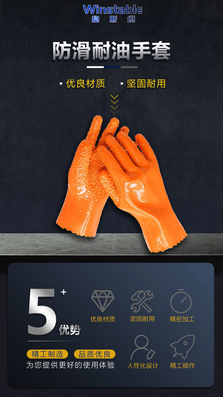 稳斯坦 防滑耐油浸塑手套 WF132 橙色 168款 2双 1件