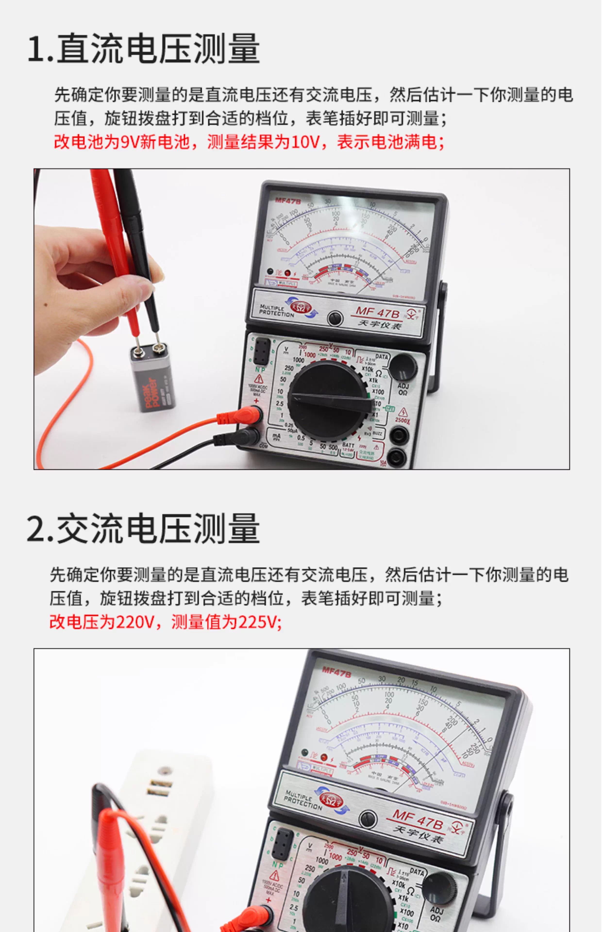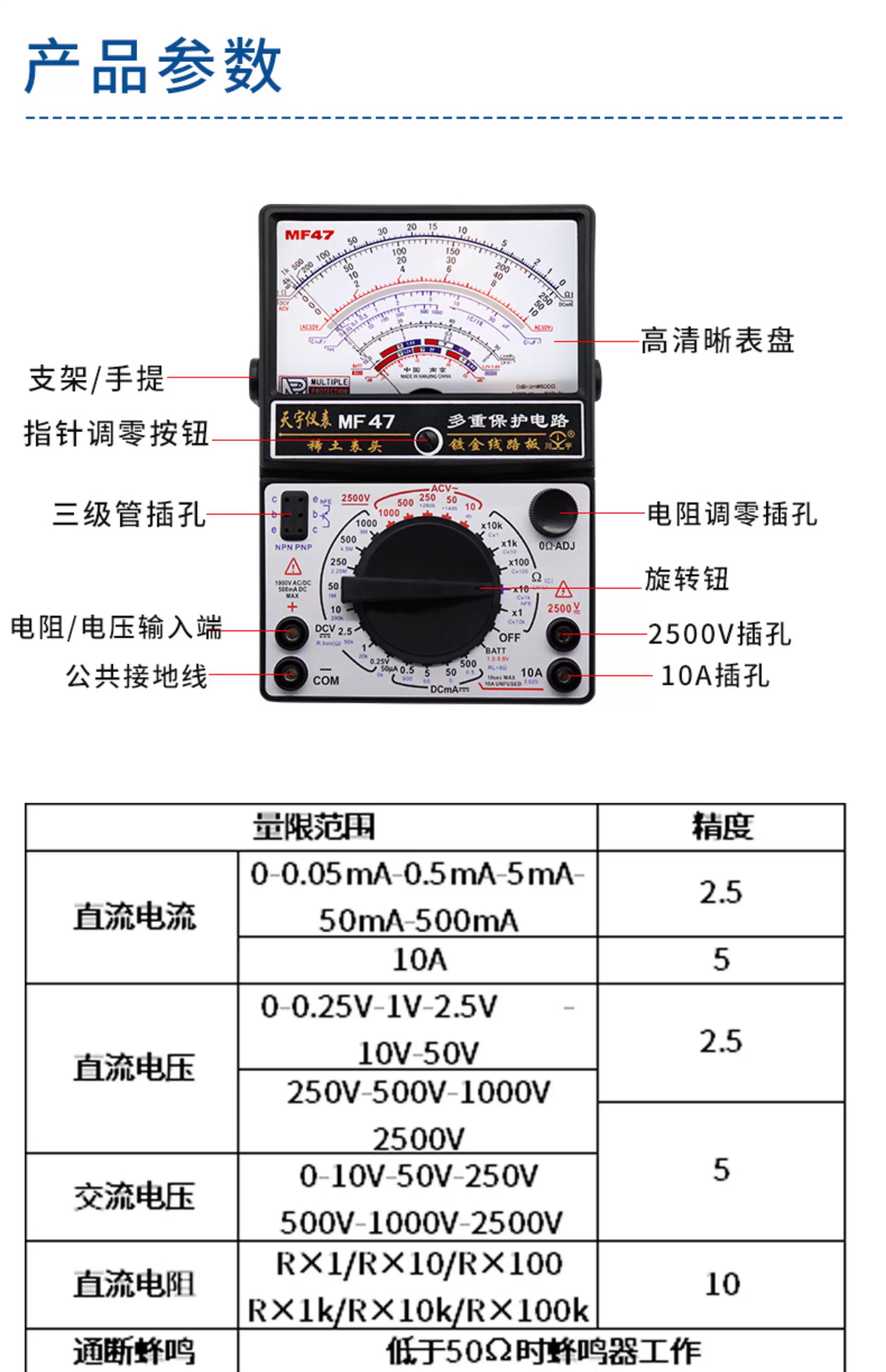 天宇 高精度指针型万用表 MF47 标准型带电池 1个
