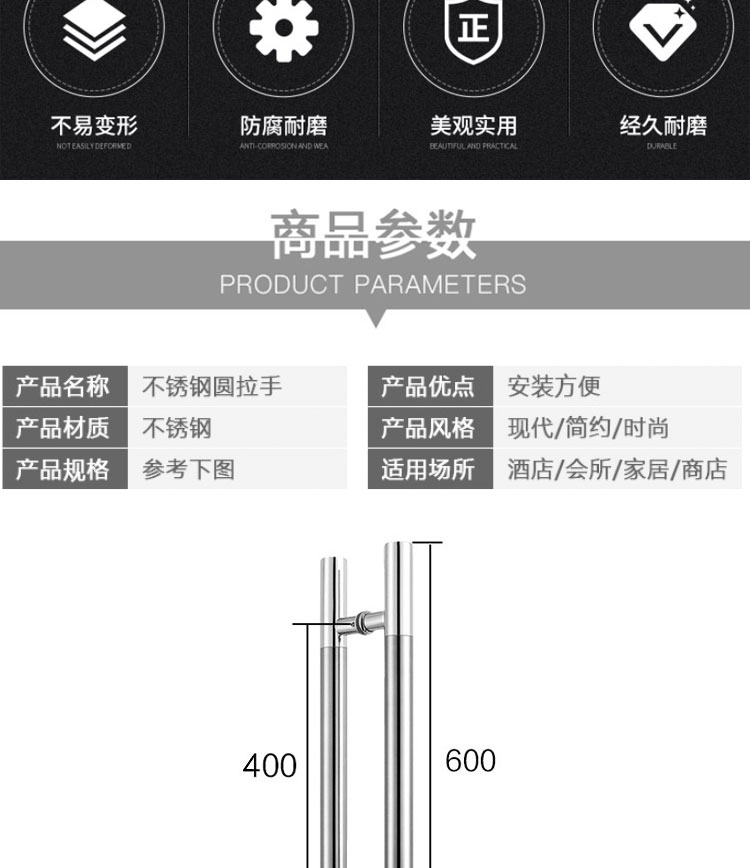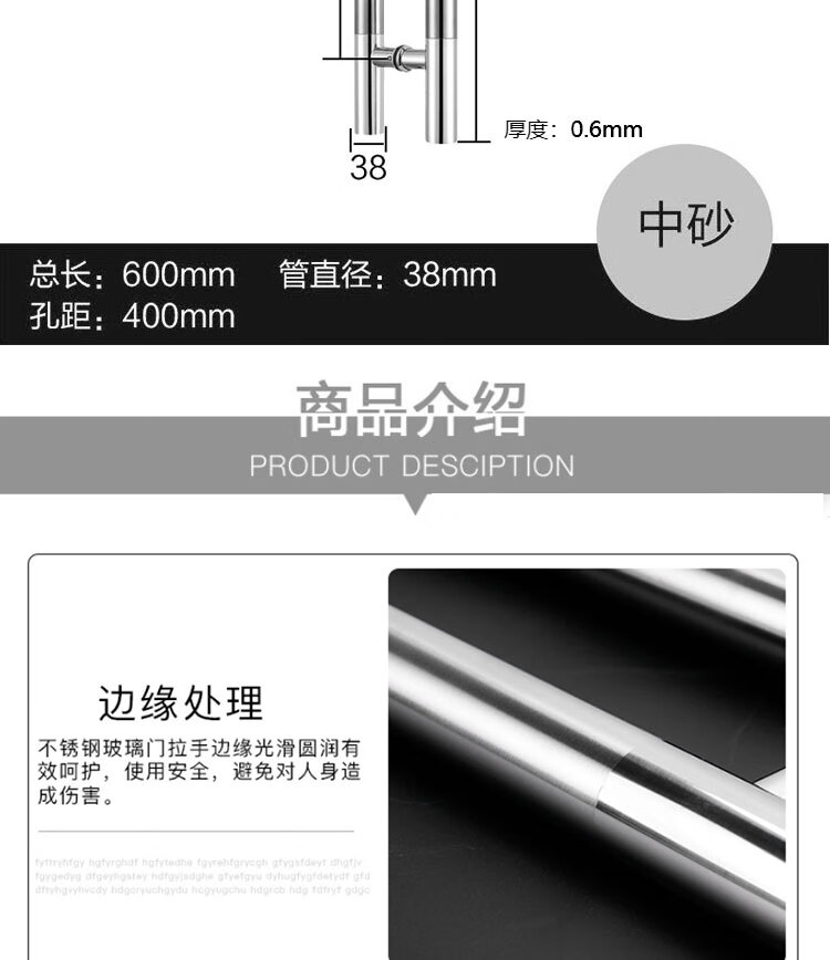 冰禹 不锈钢玻璃门拉手 BH-635 加厚38管总长600孔距400 1付