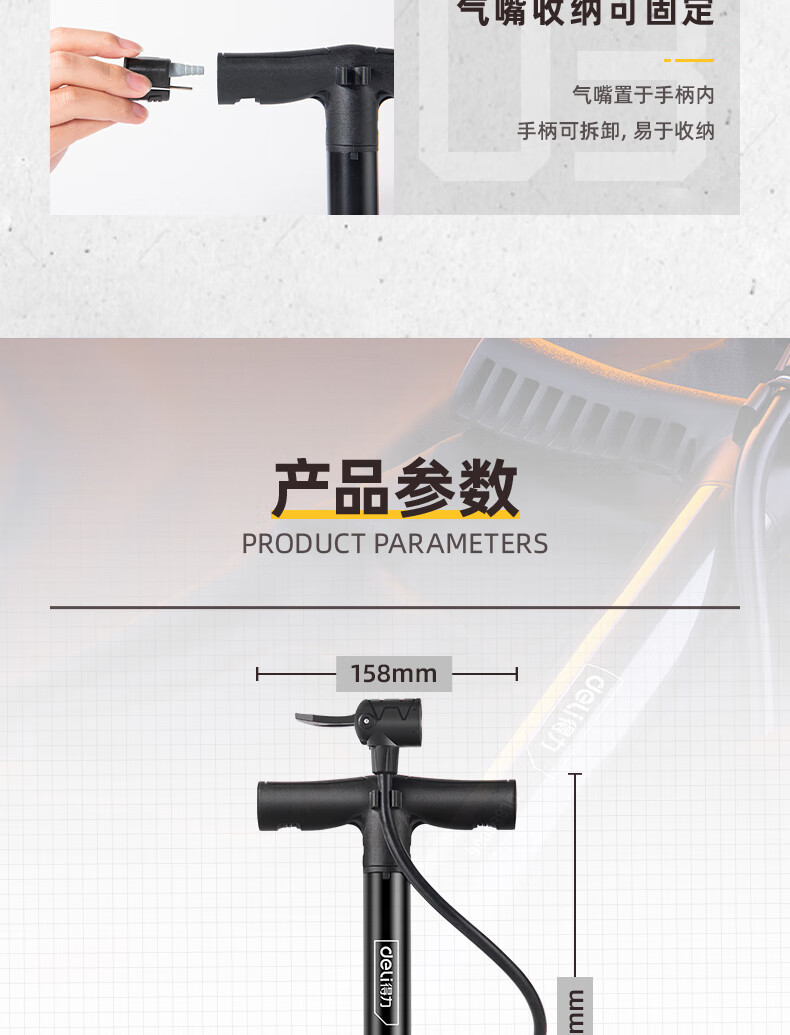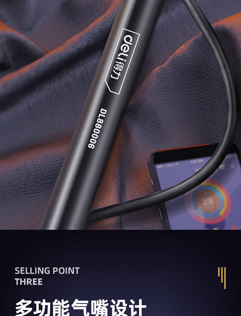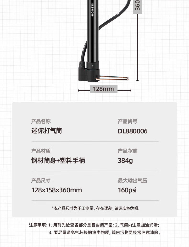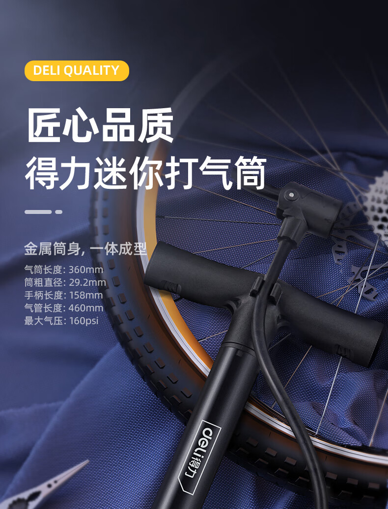 得力 打气筒 DL880006 黑色 单增压 迷你160psi 1个