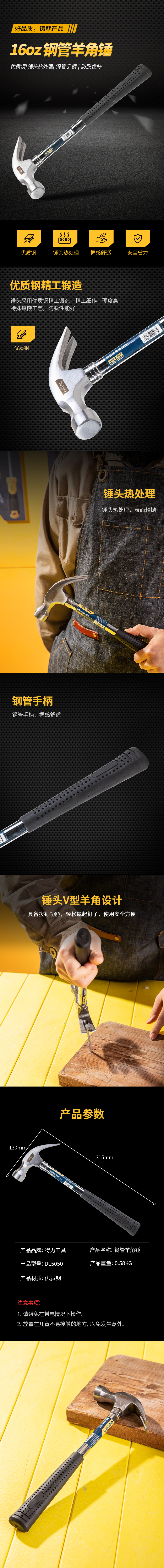 得力 钢管柄羊角锤 DL5050 黑色 1lb 1把