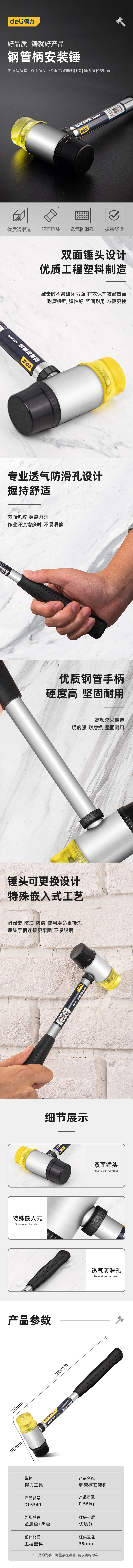 得力 钢管安装锤 DL5340 银色 优质钢 40mm 1把