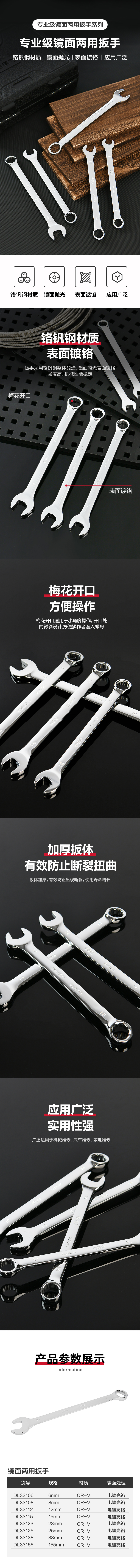 得力 镜面两用扳手 DL33141 铬钒钢 银色 41mm 1把