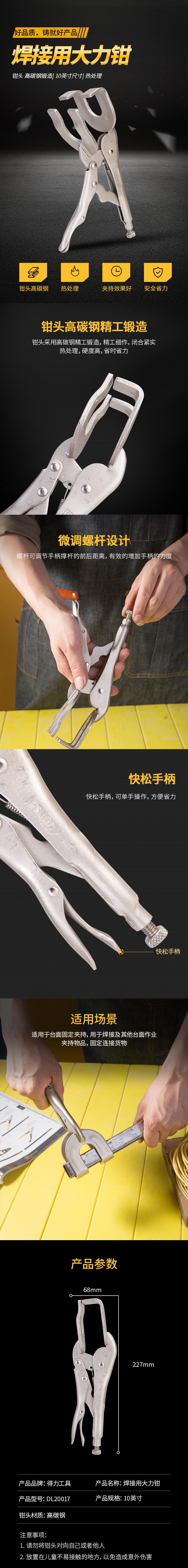 得力 焊接大力钳 DL20017 银色 钢材 10寸 1把
