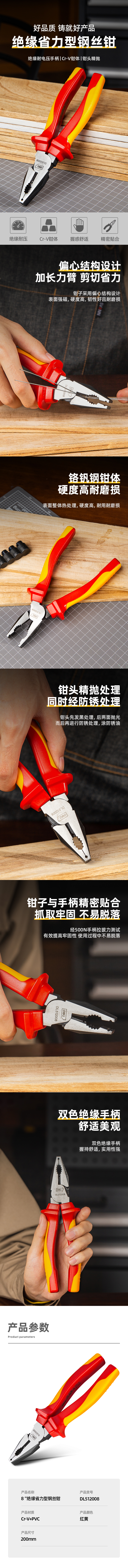 得力 绝缘省力型钢丝钳 DL512008 红色 8寸 1把