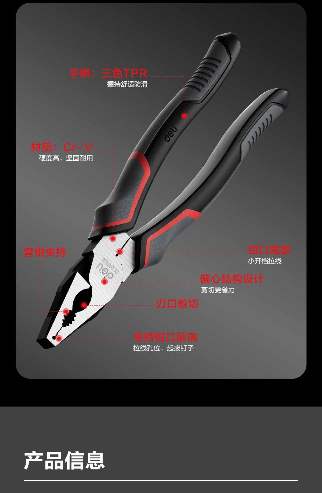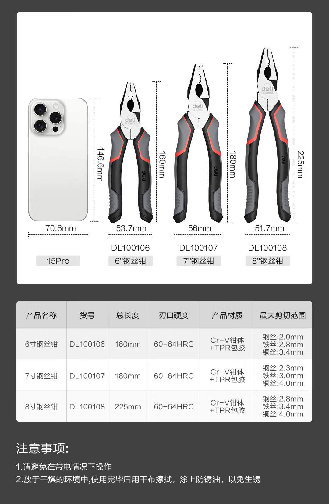 得力 日式钢丝钳 DL100106 红色 铬钒钢 6寸 1把