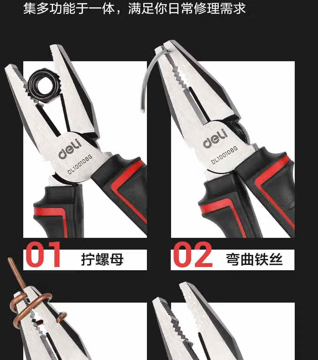 得力 工业级日式省力钢丝钳 DL100107G 红色 7寸 1把