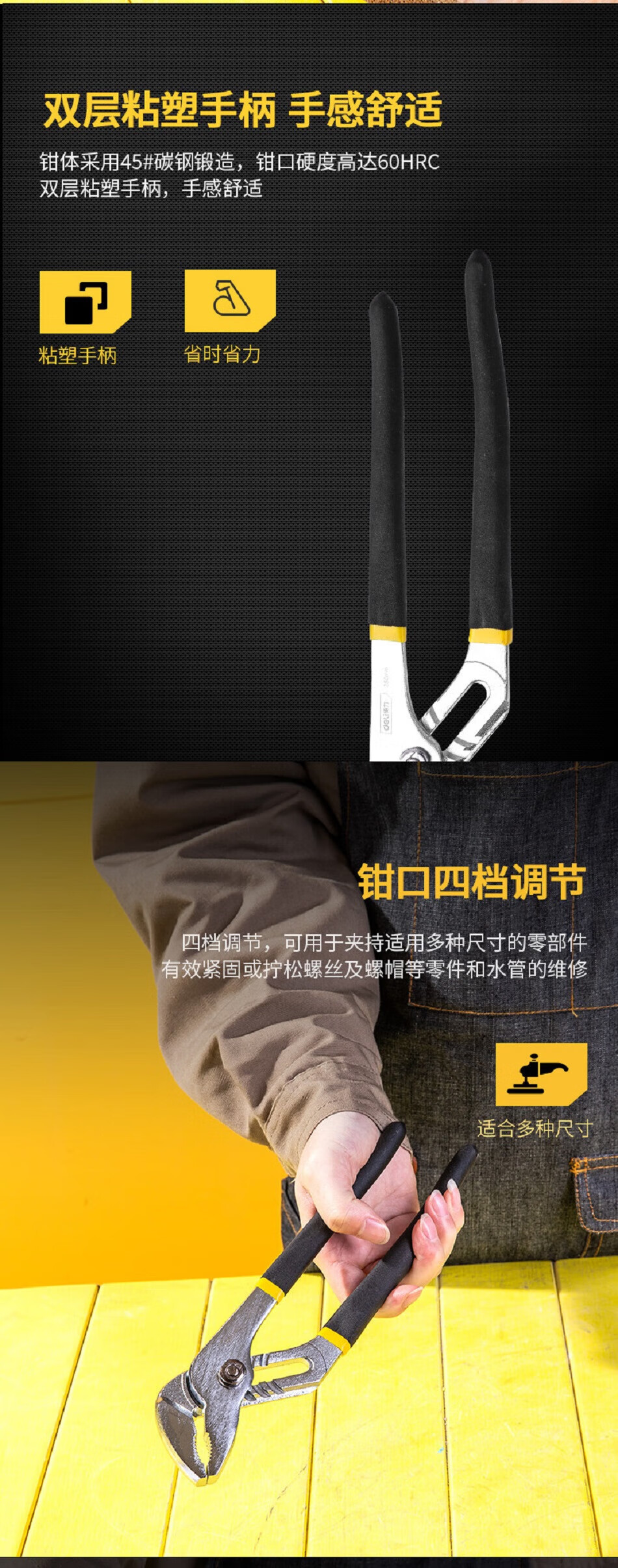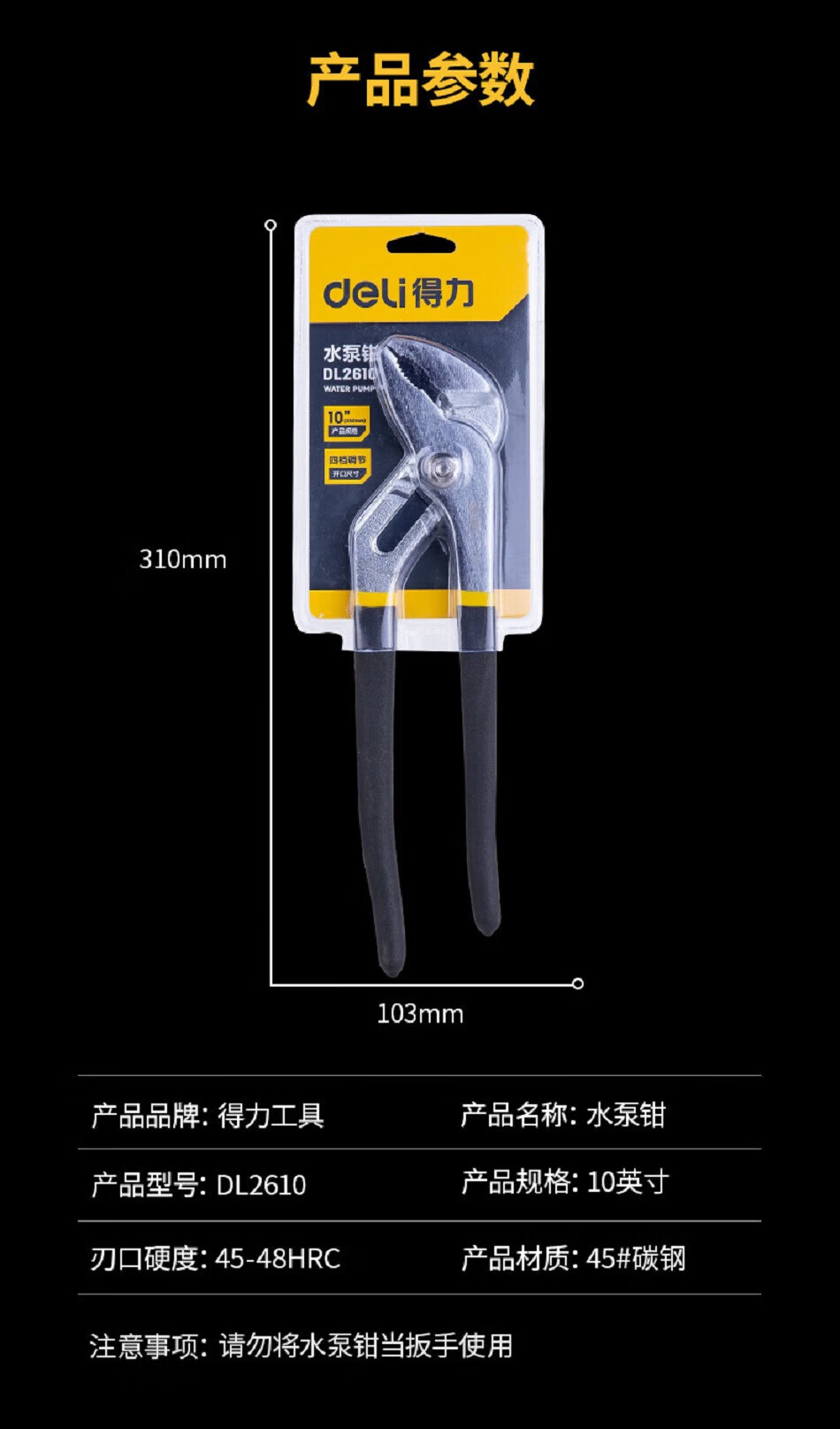 得力 水泵钳 DL2616 黑色 16寸 1把