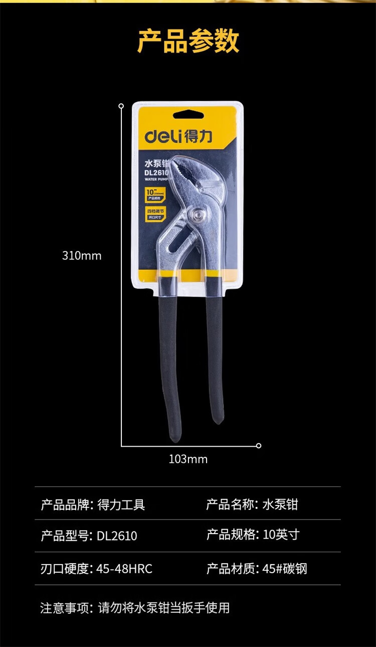 得力 水泵钳 DL2608 黑色 8寸 1把