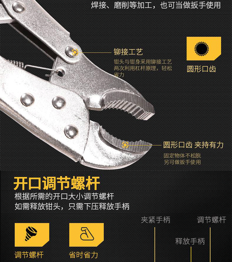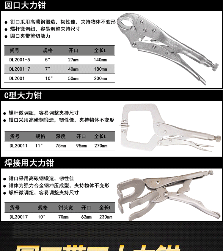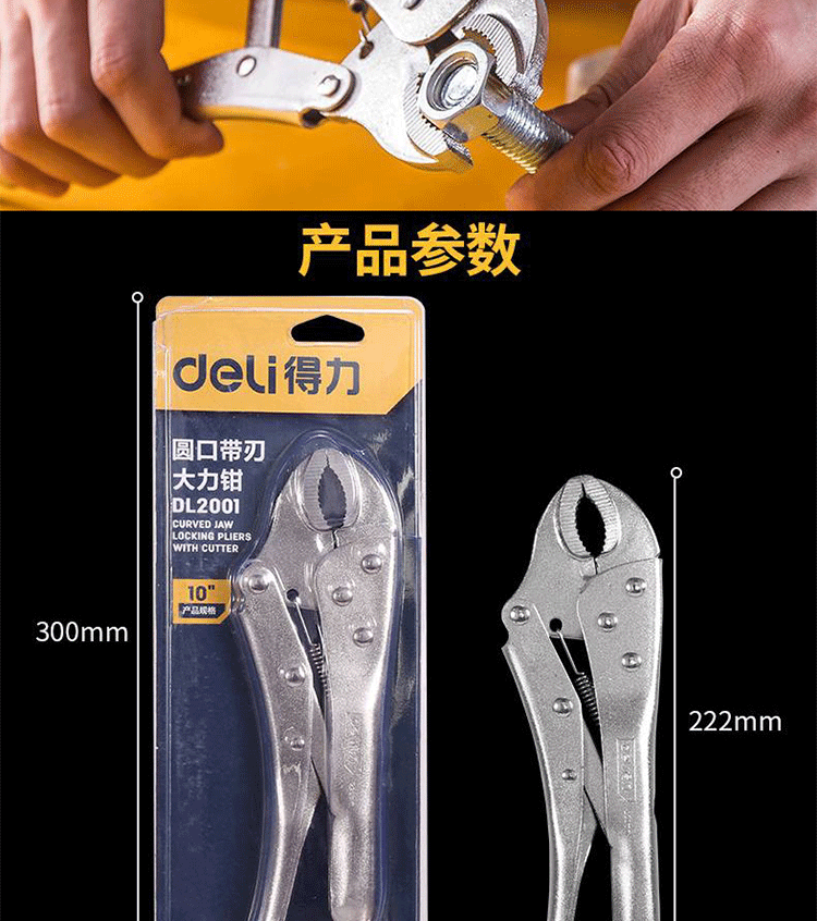 得力 圆口大力钳 DL2001-7 银色 高碳钢 7寸 1把
